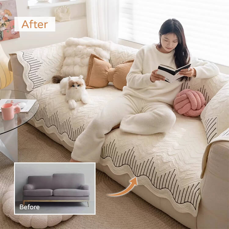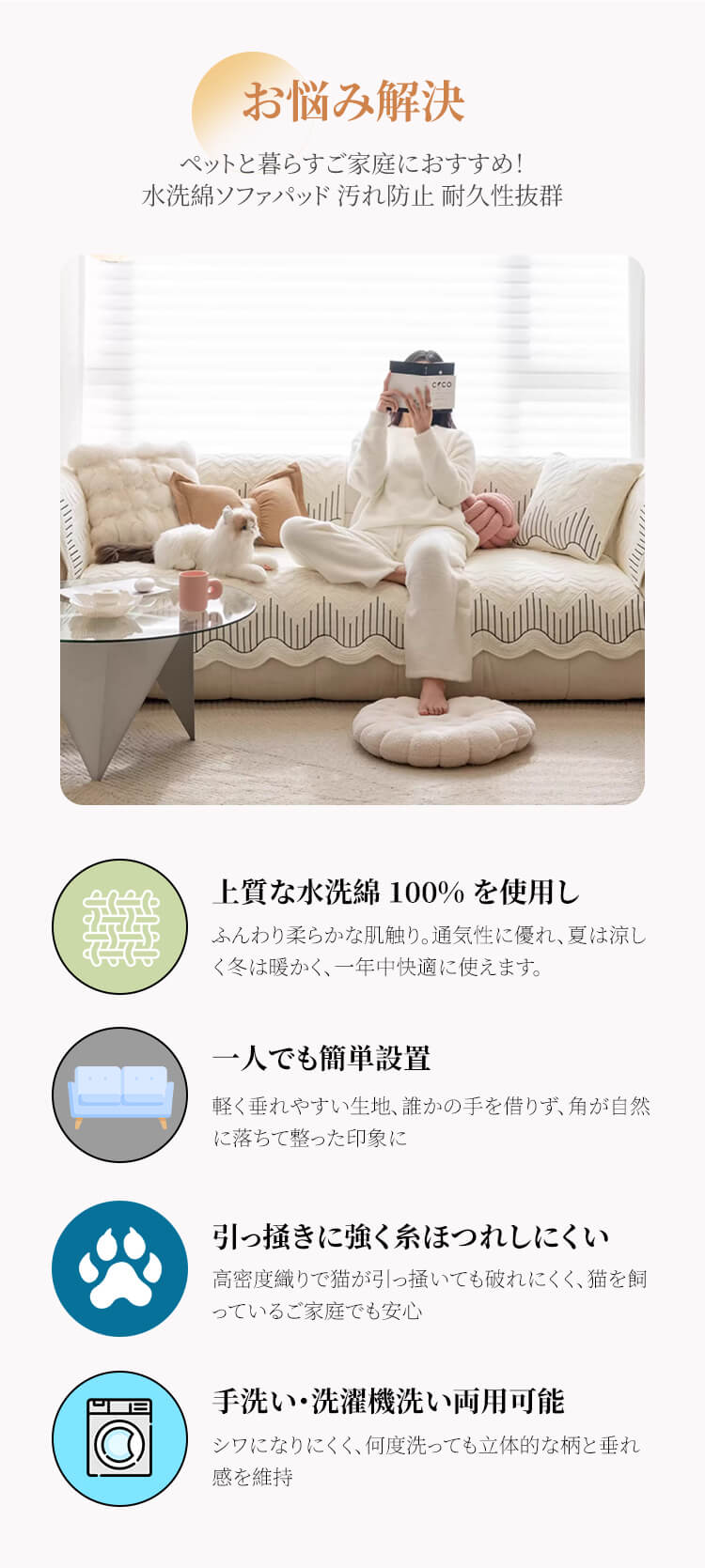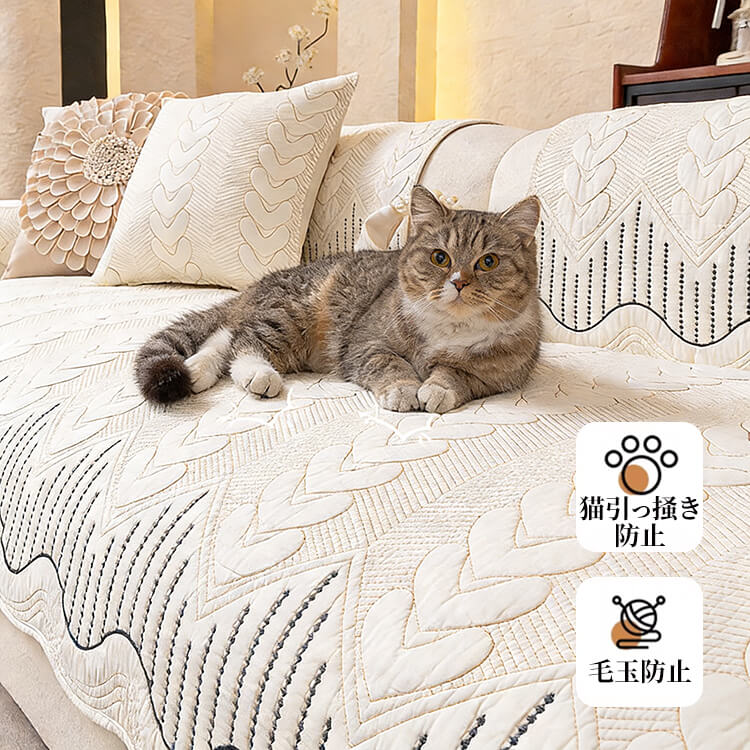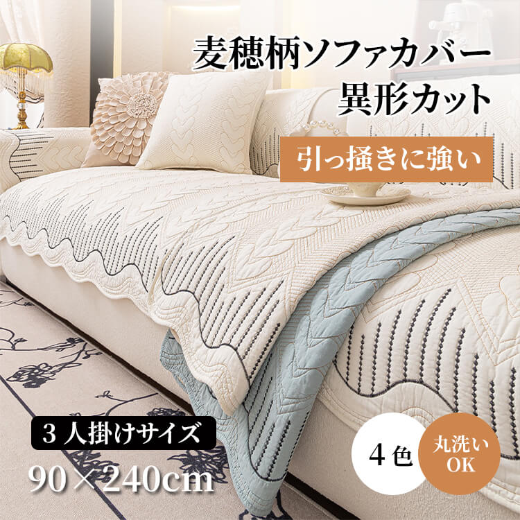 异形カットマルチカバー ソファー ワラビーデザイン 3~4人掛け 麦穂柄 ソファーマット 肘あり 肘なし 滑り止め 綿100% ペット 猫 犬 爪とぎ 伤 防止 丸洗い 春夏秋冬 インテリア 北欧風