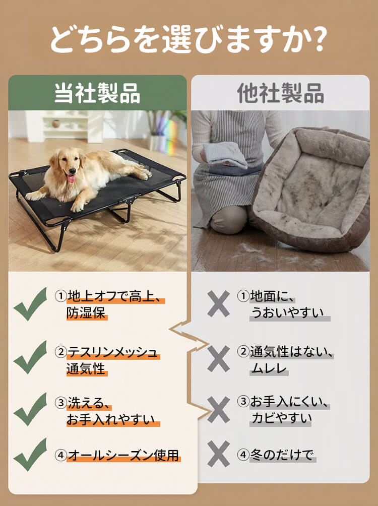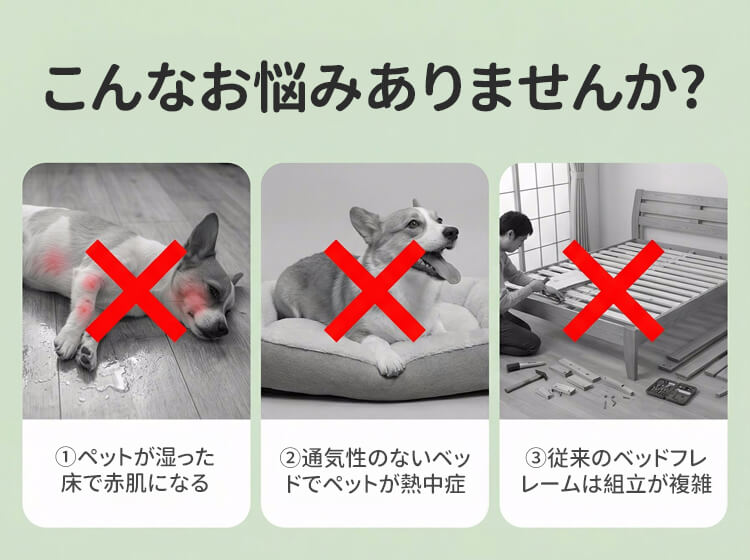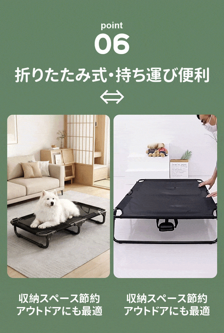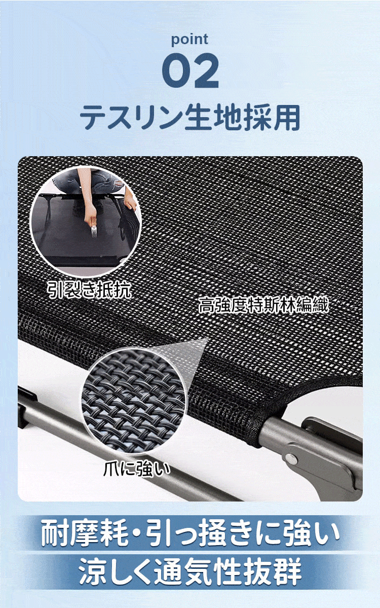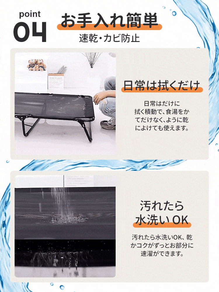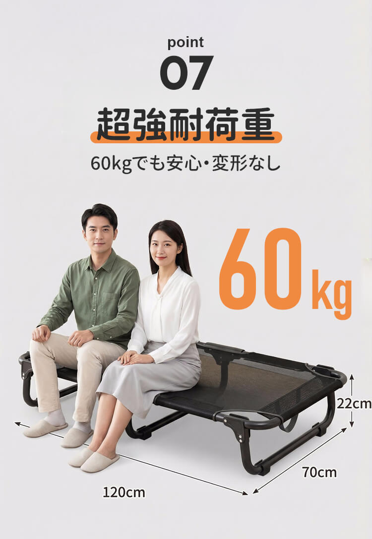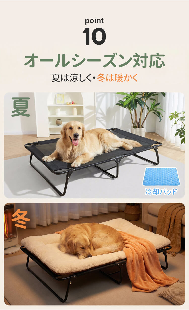 脚付きペットベッド 組み立て不要 コット メッシュ 犬 猫 完成品 高床式 通気性抜群 蒸れない 涼しい 夏用 湿気対策 地面離れ 洗える 頑丈 室内 屋外 アウトドア キャンプ オールシーズン 小 中型犬