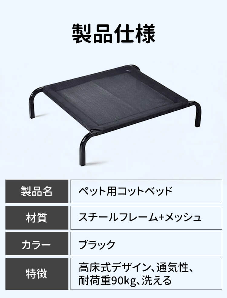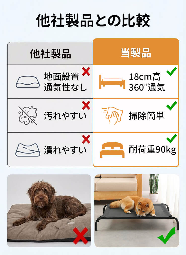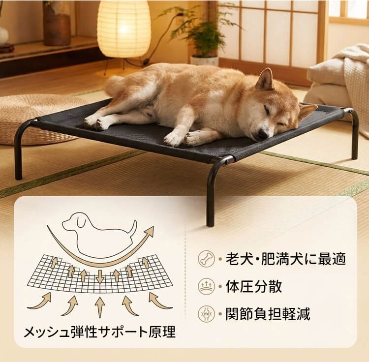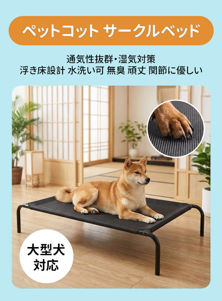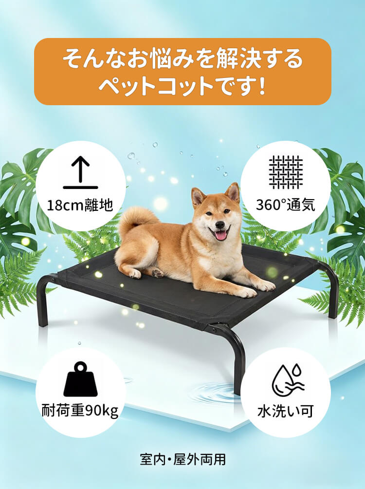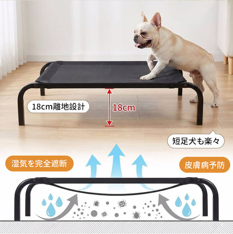 脚付きメッシュペットコット 大型犬 ベッド 通気性抜群 18cm離地 耐荷重90kg 蒸れない 涼しい 夏用 湿気対策 地面離れ 洗える 頑丈 室内 屋外 アウトドア キャンプ 関節に優しい サークルベッド