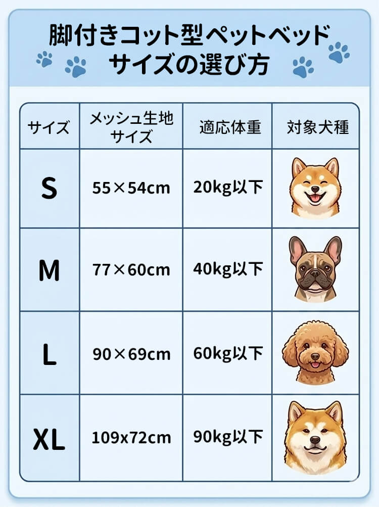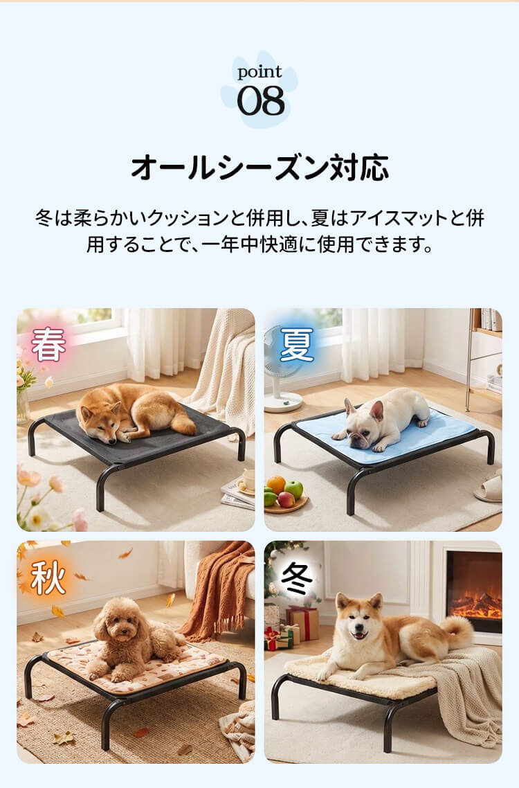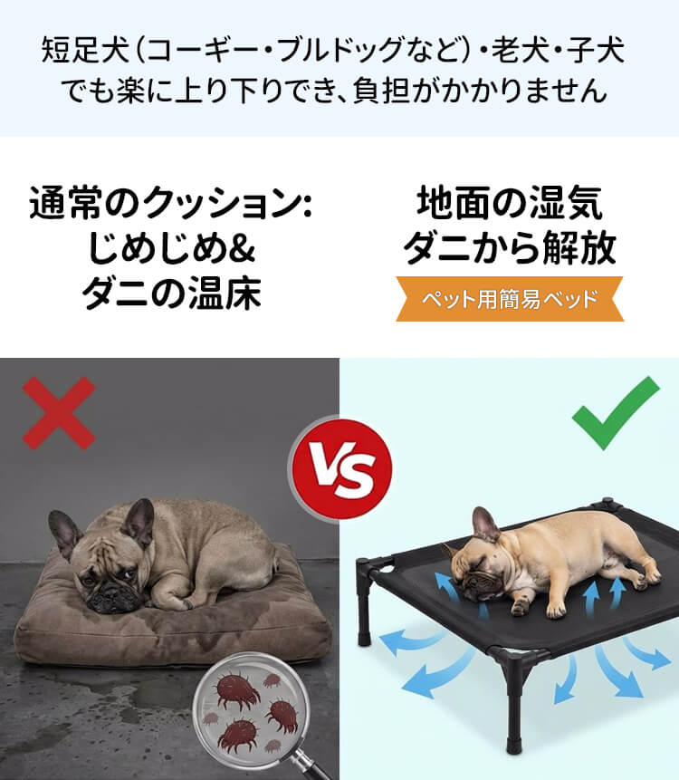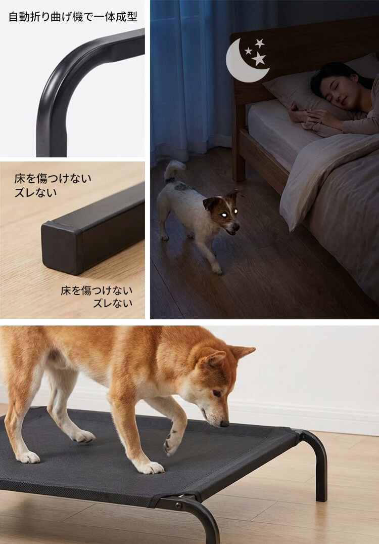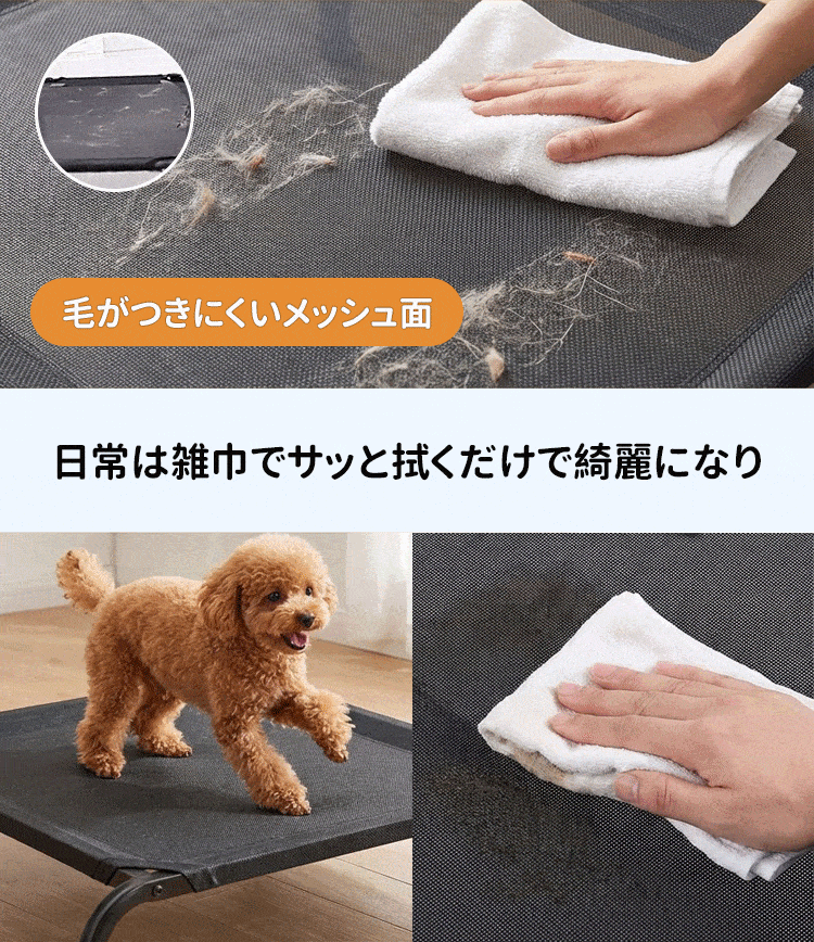 脚付きメッシュペットコット 大型犬 ベッド 通気性抜群 18cm離地 耐荷重90kg 蒸れない 涼しい 夏用 湿気対策 地面離れ 洗える 頑丈 室内 屋外 アウトドア キャンプ 関節に優しい サークルベッド