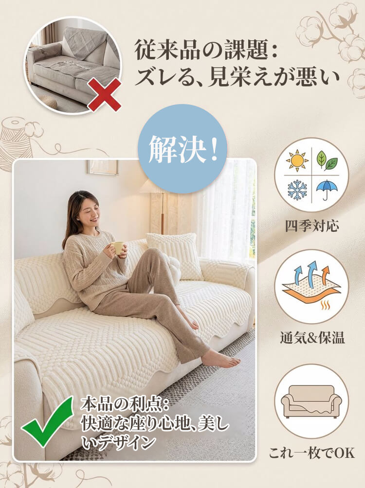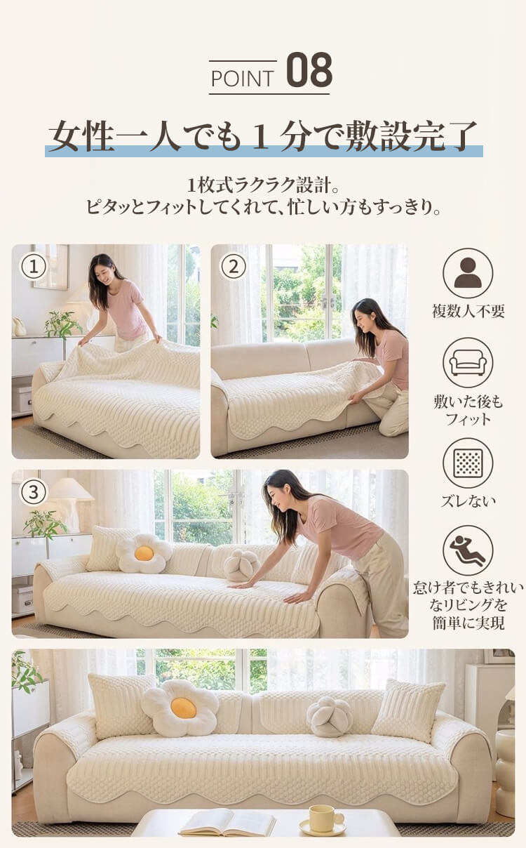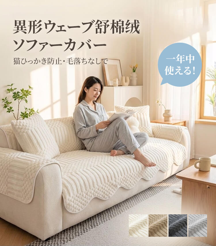 异形リームシュガーコットンソファカバー 舒棉绒 猫ひっかき防止 抜け毛対策 滑り止め 洗える 厚手 高密度 コットンベルベット マルチカバー ソファー保護 伤防止 汚れ防止 犬猫用 1~4人掛け おしゃれ 北欧 春夏秋冬 オールシーズン