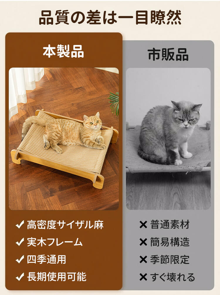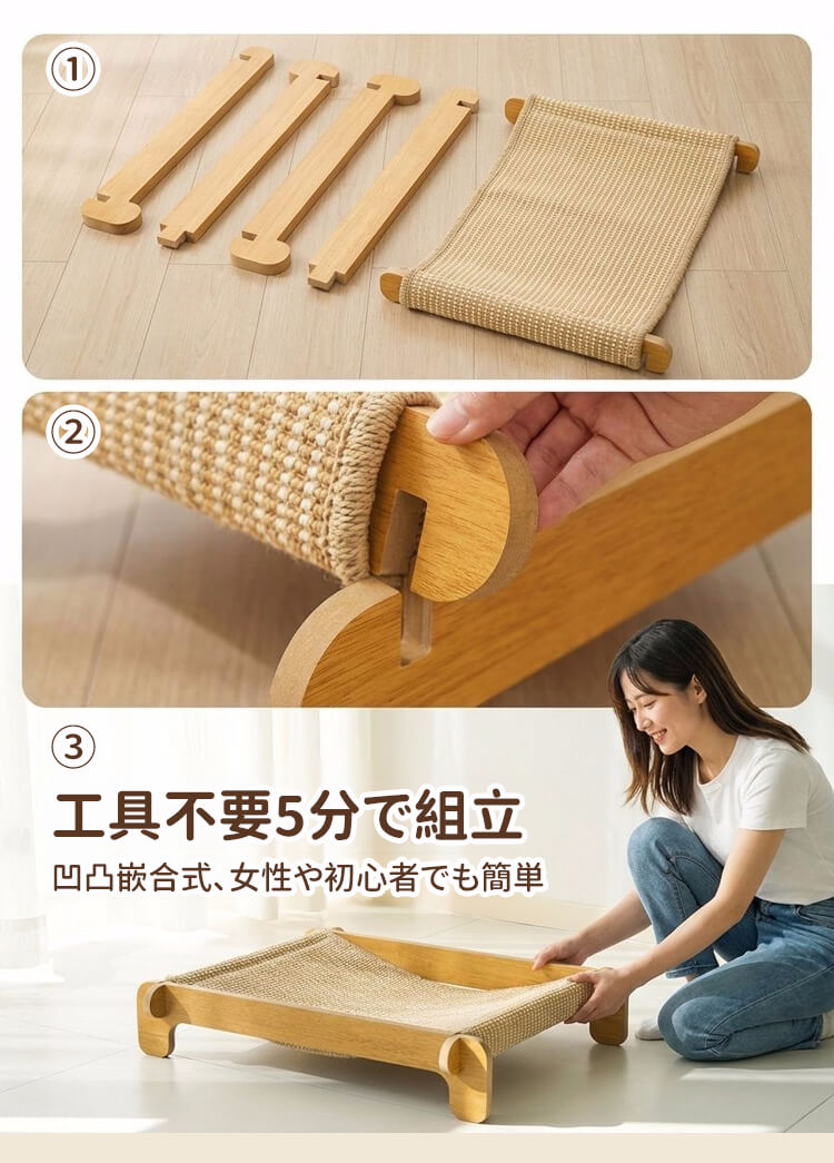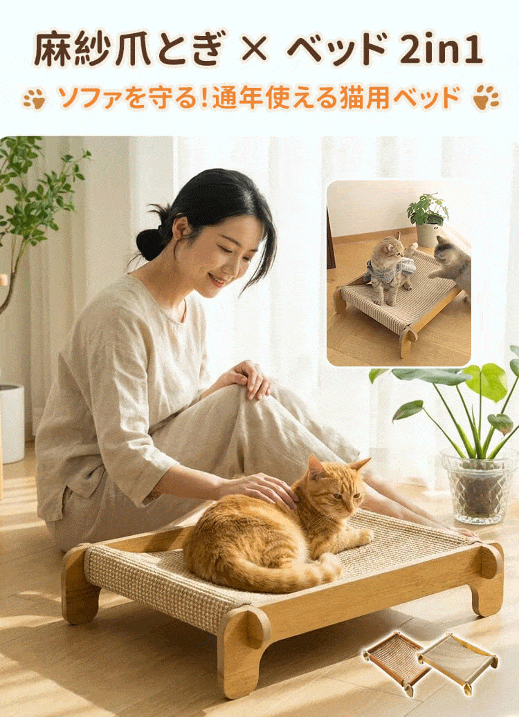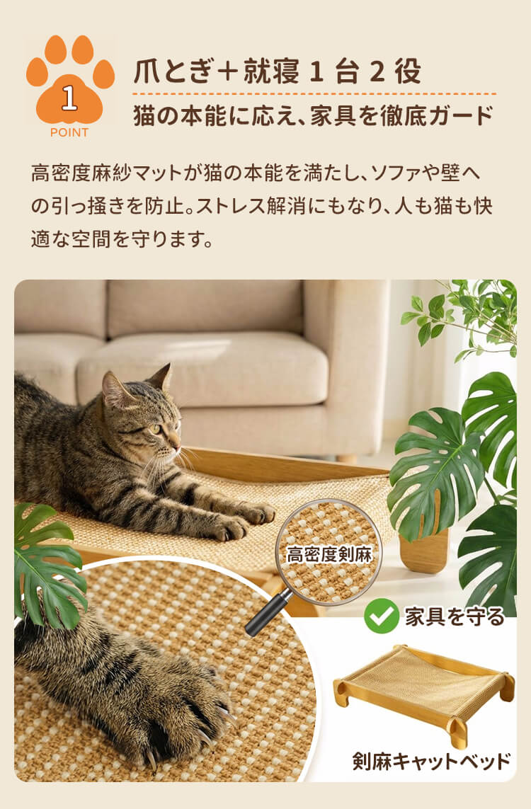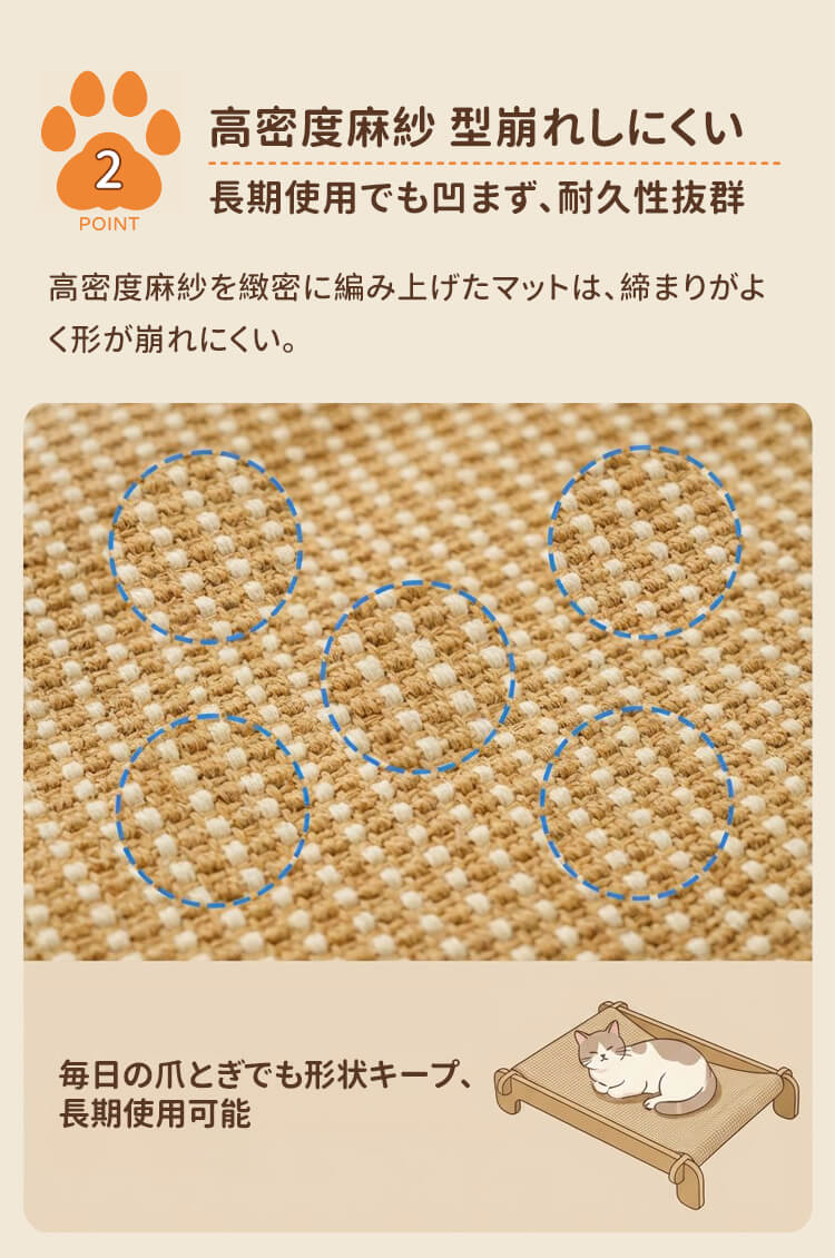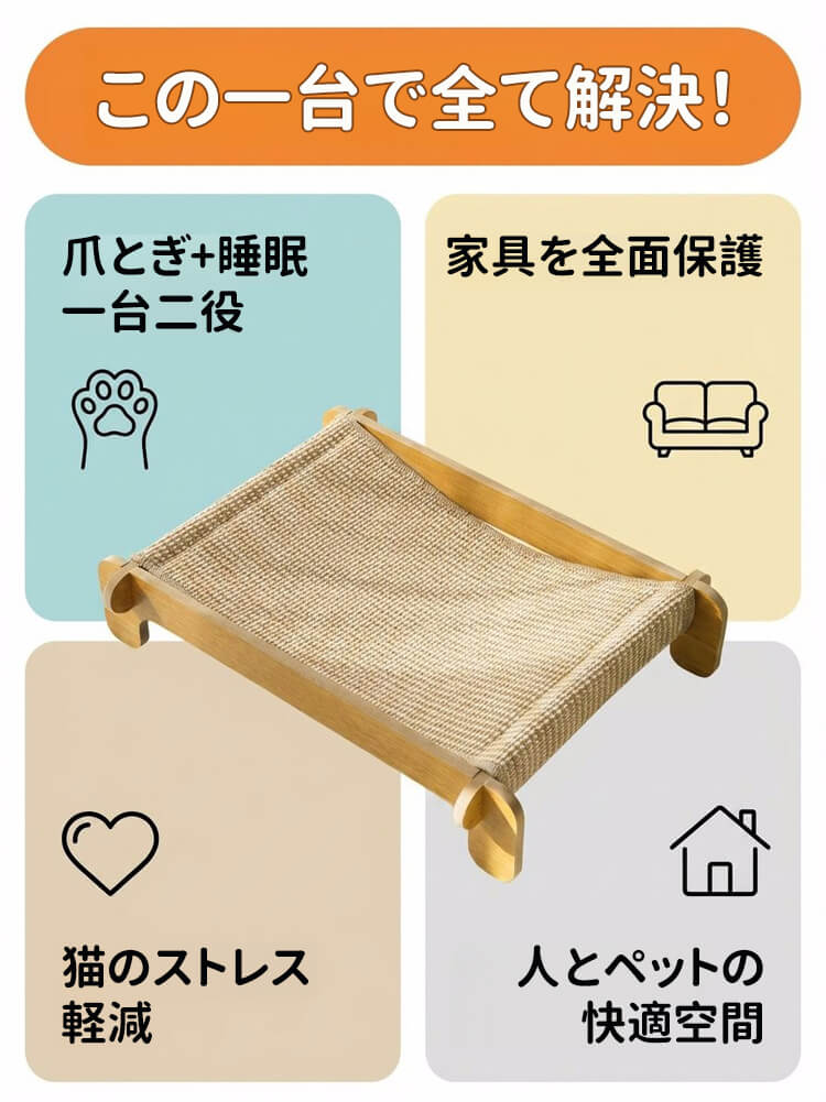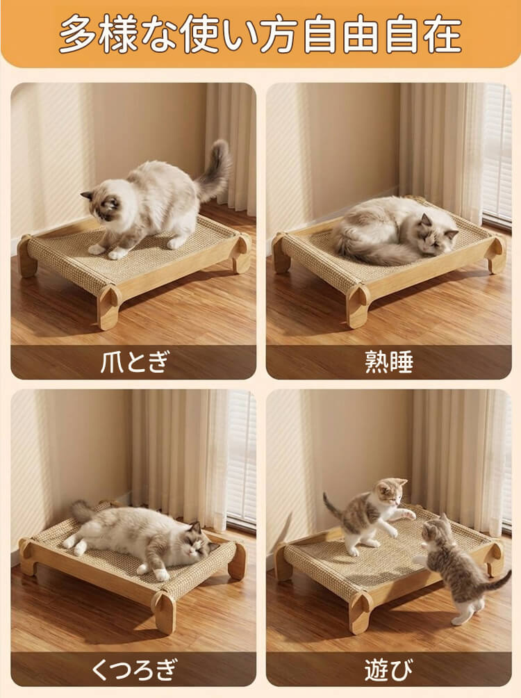 耐引っかき剣麻 猫ベッド 爪とぎ 爪研ぎ サイザル麻 木製 天然素材 耐引っかき 高密度 丈夫 暑さ対策 ひんやり 涼しい 室内用 ストレス解消 家具保護 四季通用 猫ハウス ペット用品