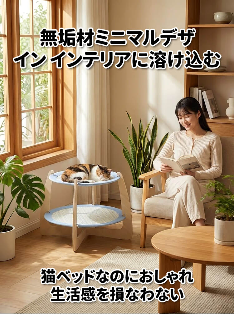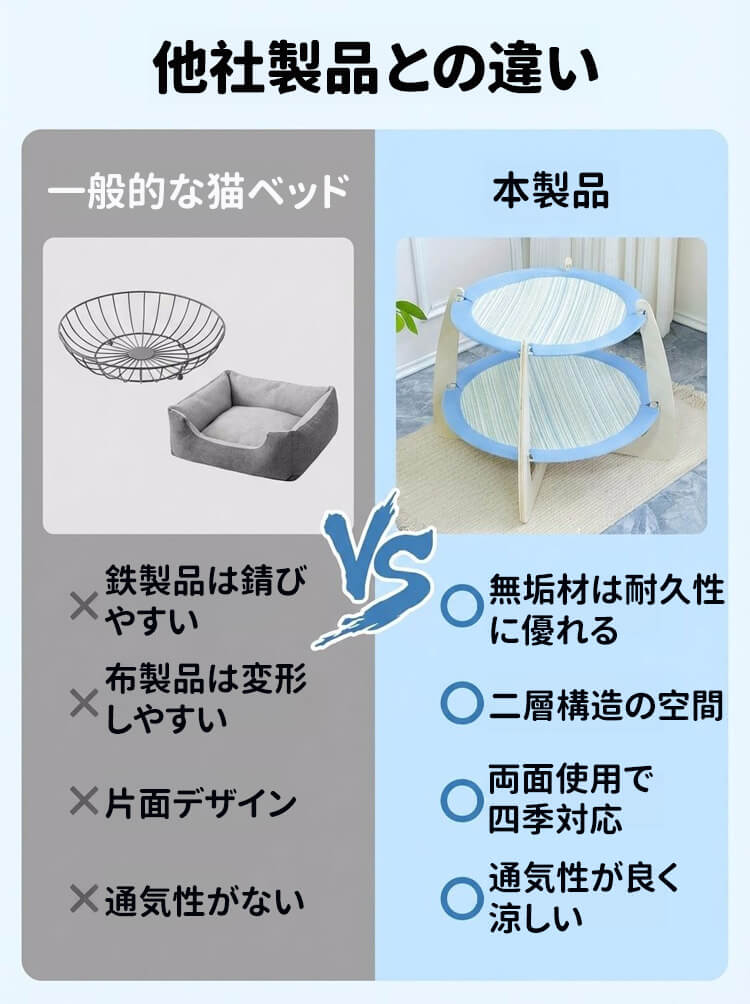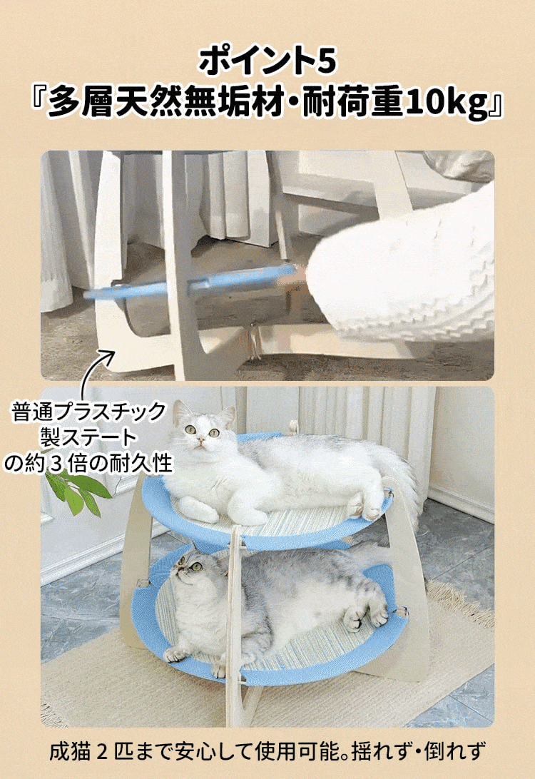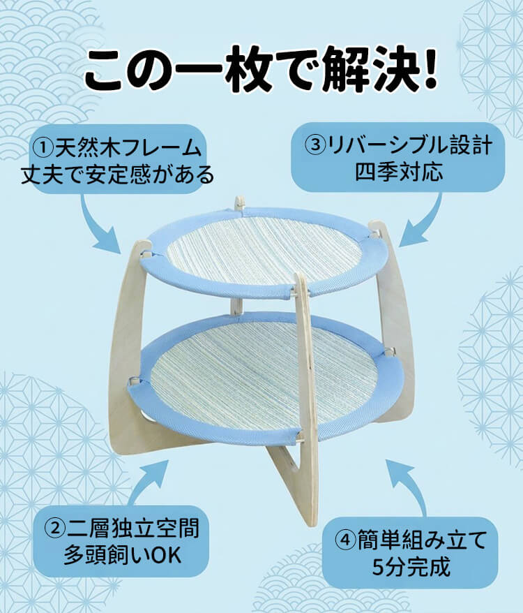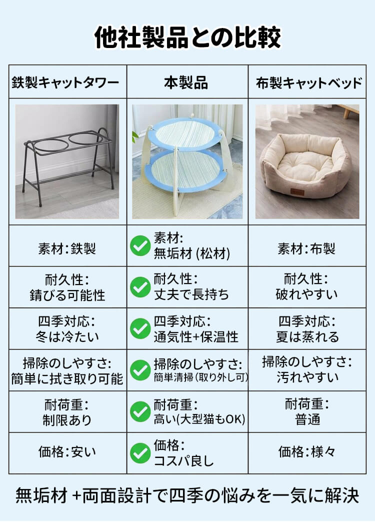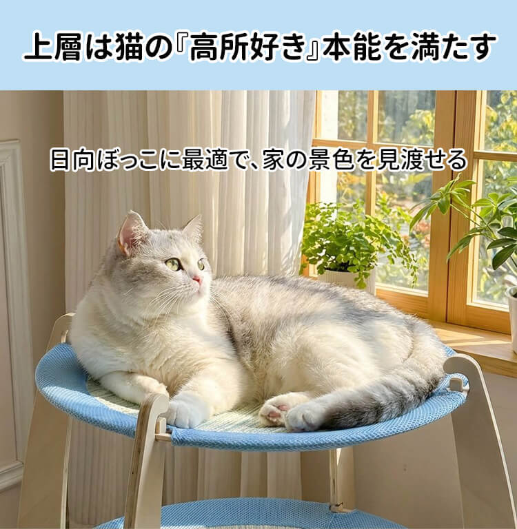二層両面四季猫ハンモック 2段 木製 天然木 二層 独立空間 多頭飼いOK リバーシブル 亜麻 ひんやり 涼しい 四季通用 通気性抜群 頑丈 安定感 お手入れ簡単 室内用