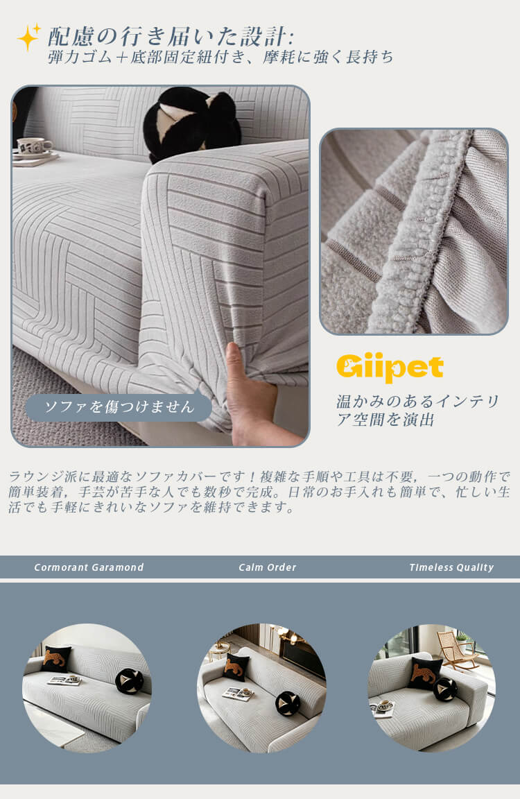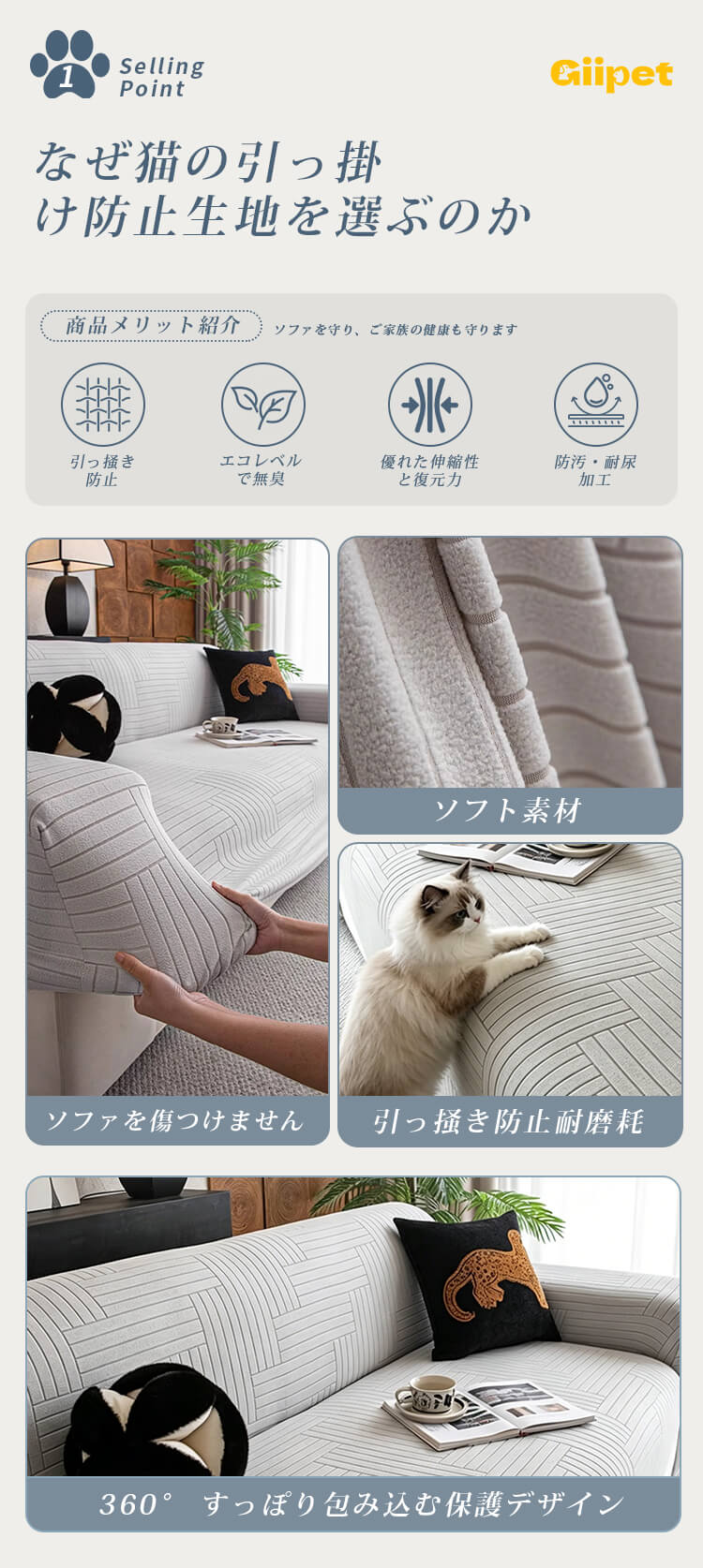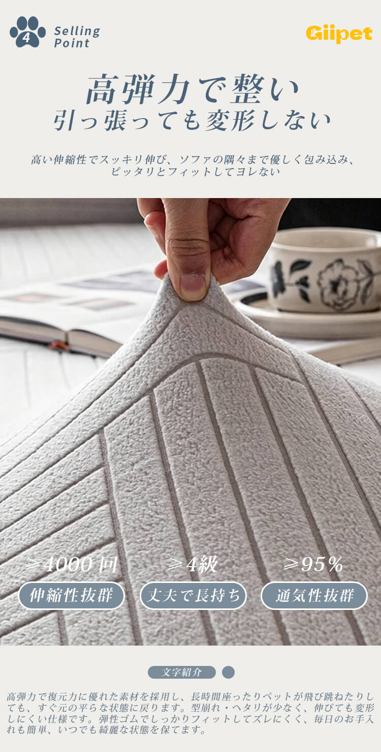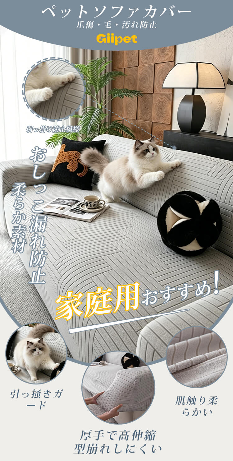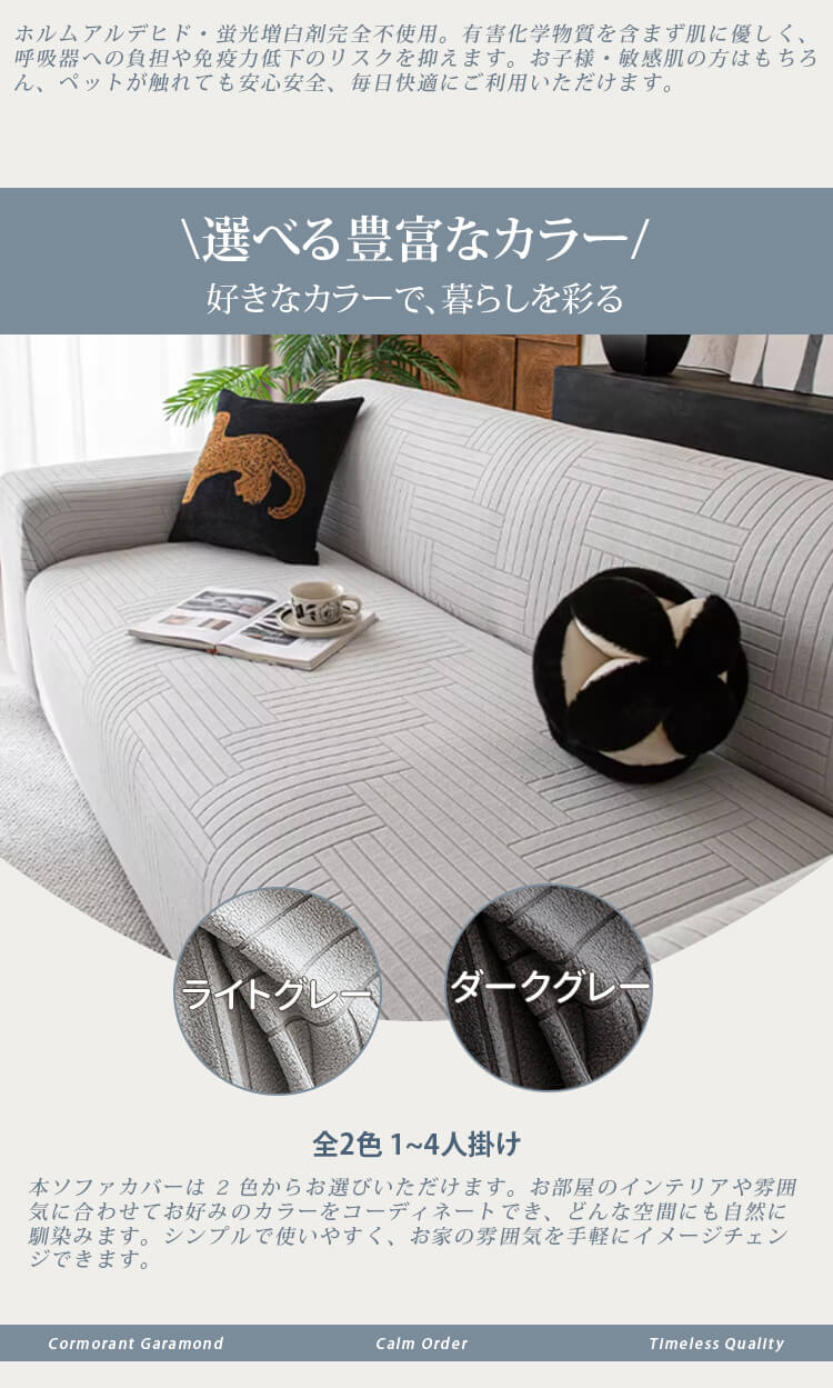 無地グレー編みソファカバー 防水 おしっこ対策 爪とぎ防止 引っ掻きに強い 汚れ防止 伤防止 厚手 高伸縮 柔らかい 肌触り良い エコ素材 無臭 ズレにくい 洗える ソファ保護 犬猫対策 四季通用 おしゃれ