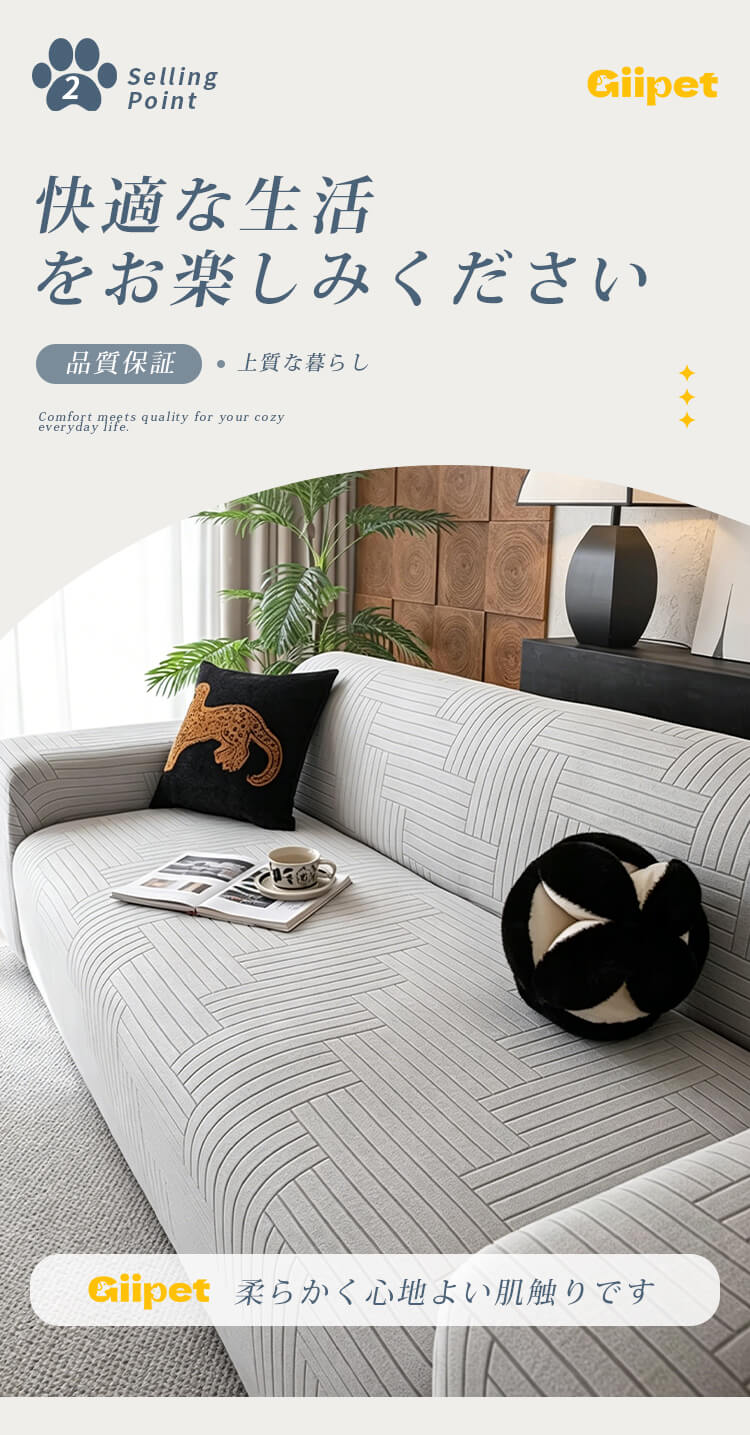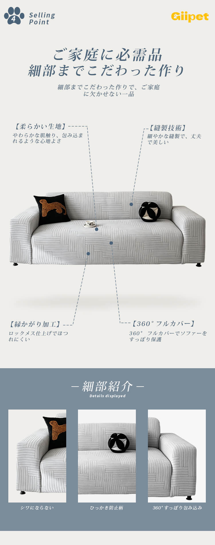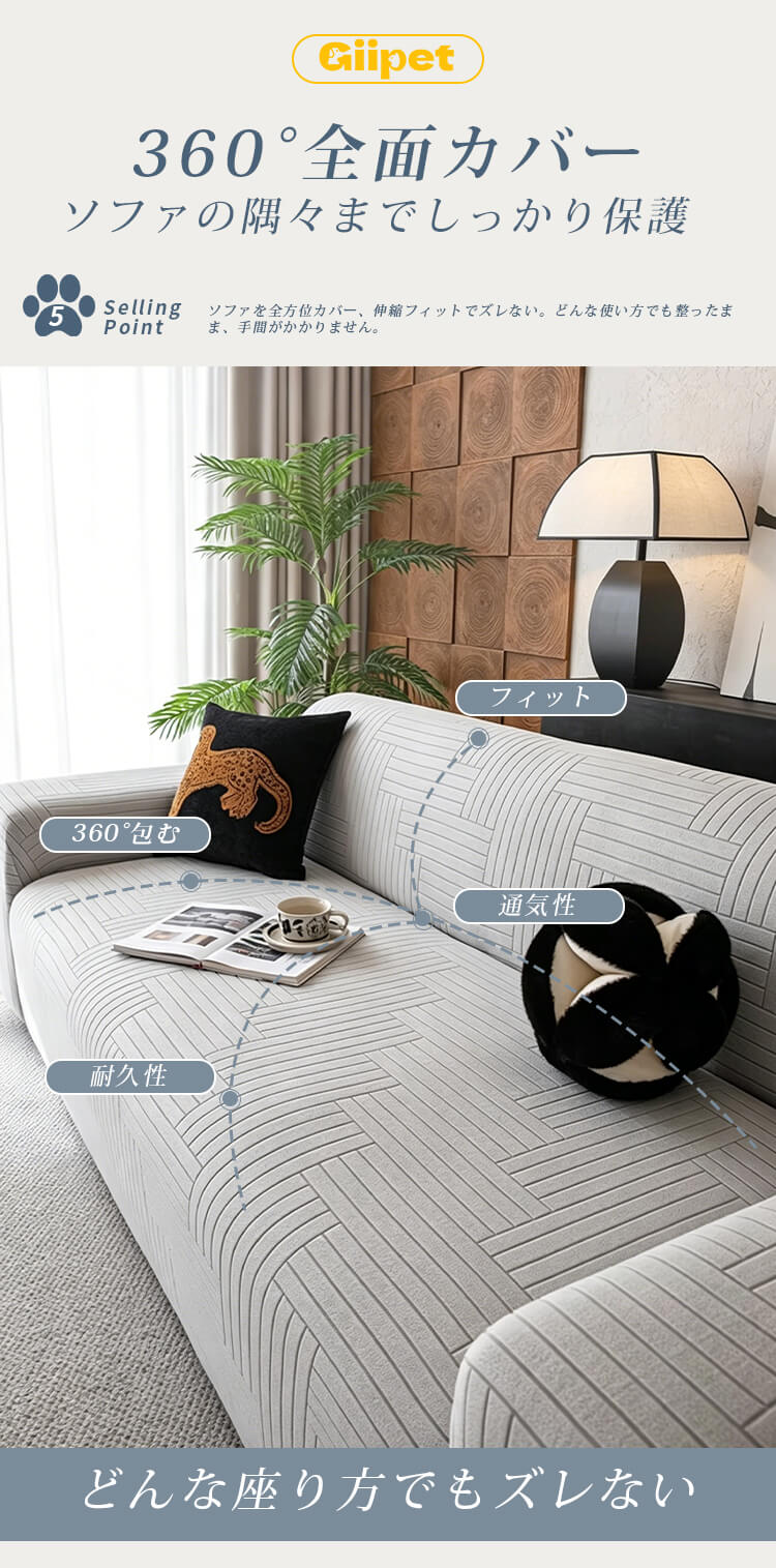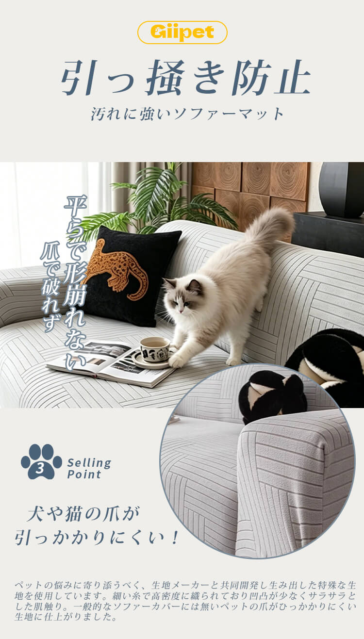 無地グレー編みソファカバー 防水 おしっこ対策 爪とぎ防止 引っ掻きに強い 汚れ防止 伤防止 厚手 高伸縮 柔らかい 肌触り良い エコ素材 無臭 ズレにくい 洗える ソファ保護 犬猫対策 四季通用 おしゃれ