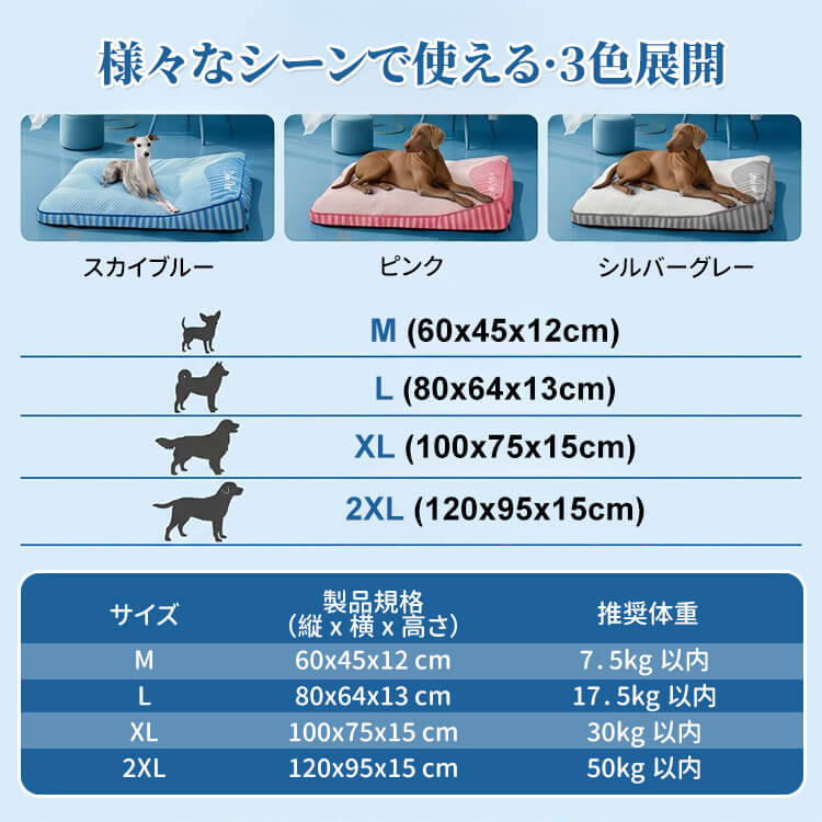 ひんやり冷感 ペット用ベッド 接触冷感 18℃瞬間冷却 クールベッド 夏用 暑さ対策 脊椎保護 姿勢サポート 通気性抜群 吸湿 安全素材 滑り止め 洗える 犬 猫用 室内用 四角型 涼しい