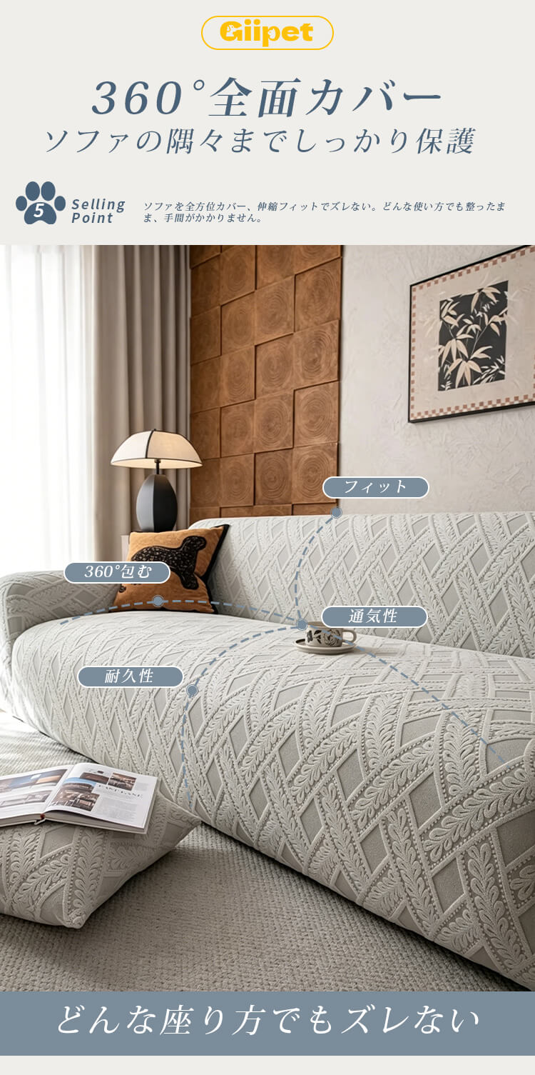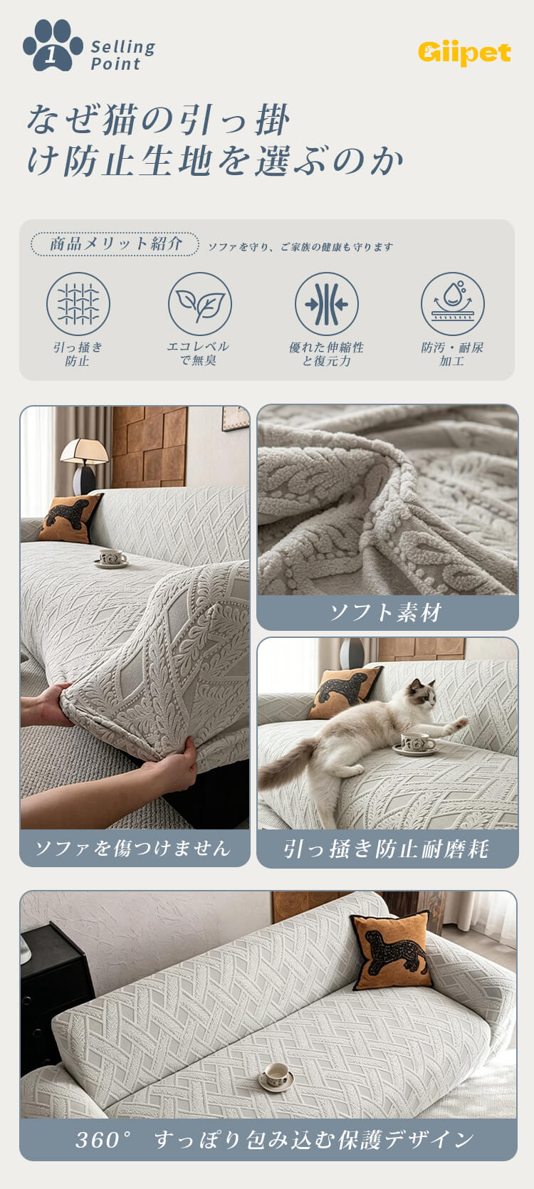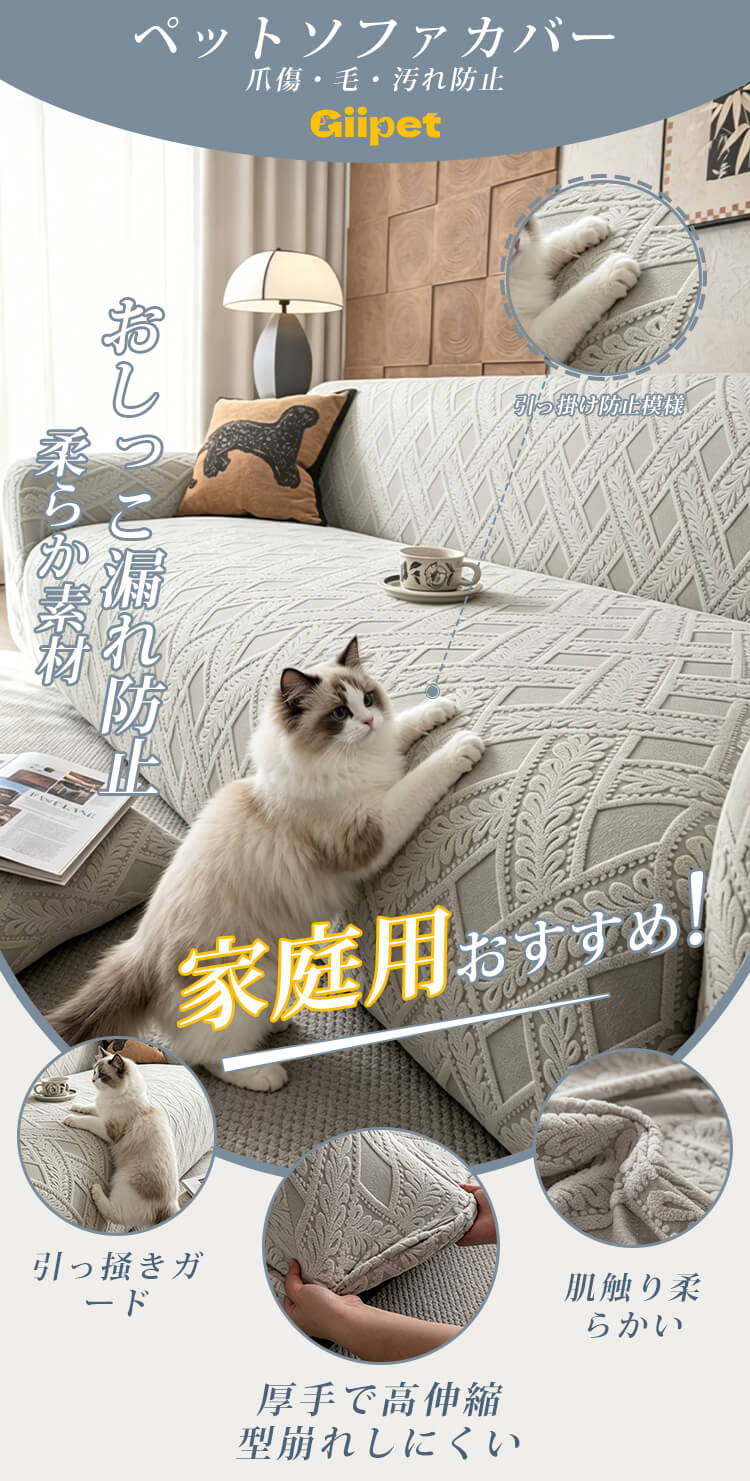 海外向けジャカードベルベットソファカバー ペット用 防水 おしっこ対策 爪とぎ防止 汚れ防止 傷防止 厚手 高伸縮 無臭 ズレにくい 洗える ソファ保護 犬猫対策 四季通用