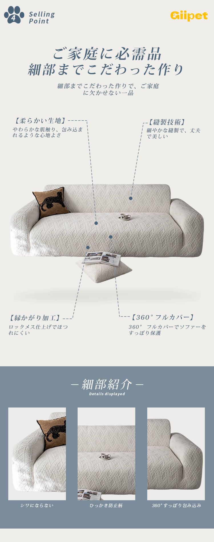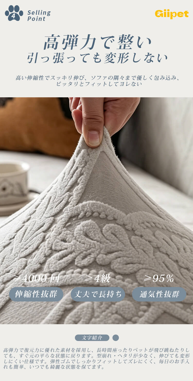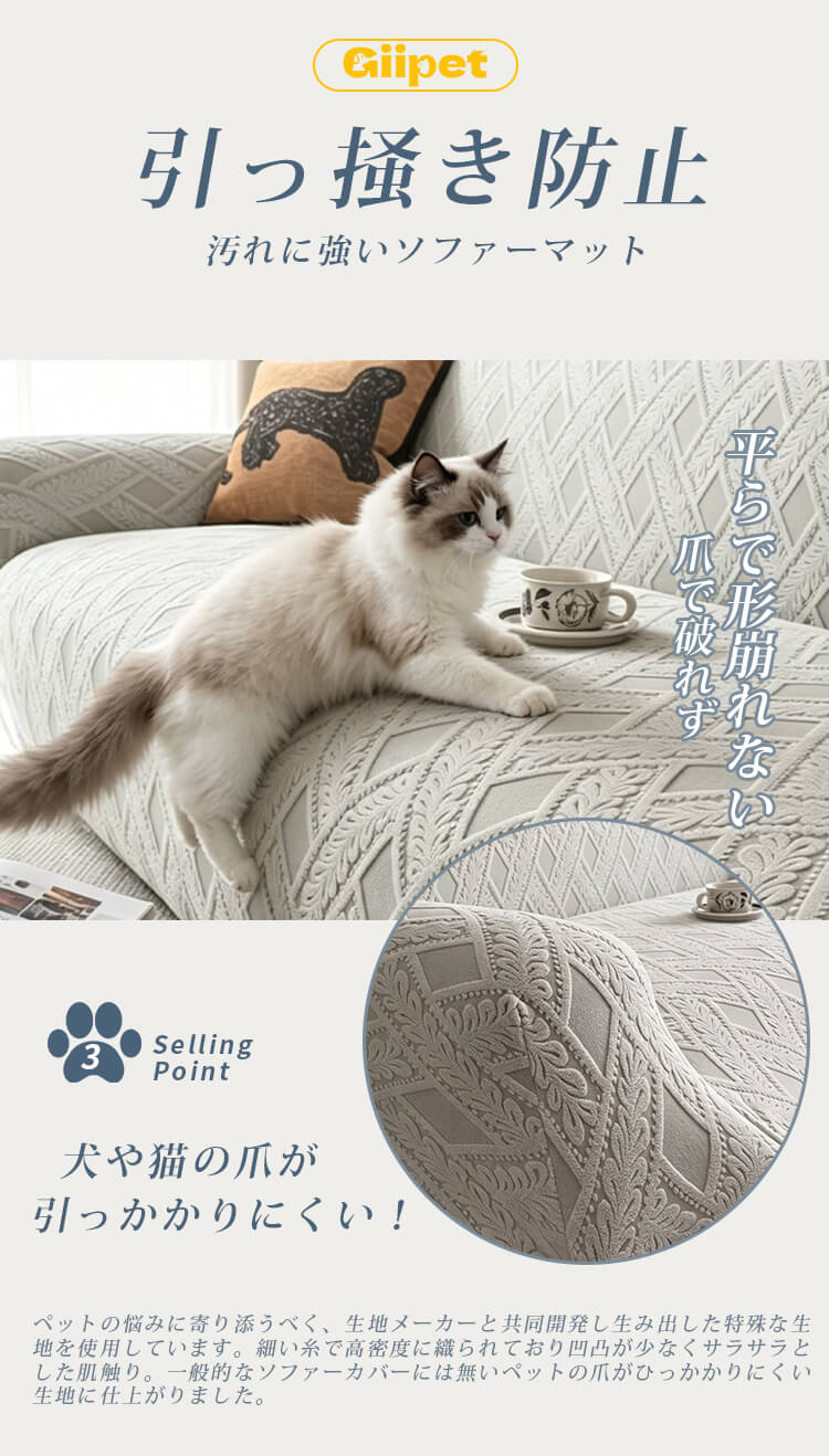 海外向けジャカードベルベットソファカバー ペット用 防水 おしっこ対策 爪とぎ防止 汚れ防止 傷防止 厚手 高伸縮 無臭 ズレにくい 洗える ソファ保護 犬猫対策 四季通用