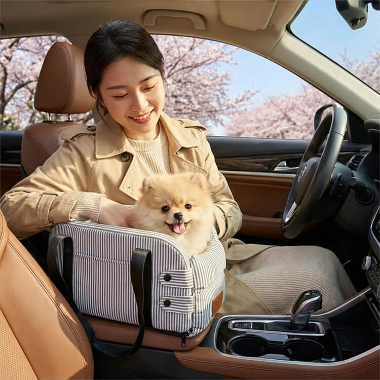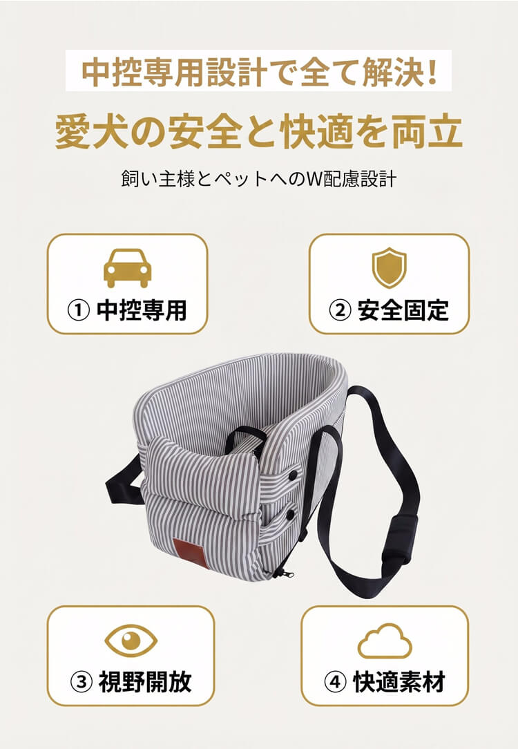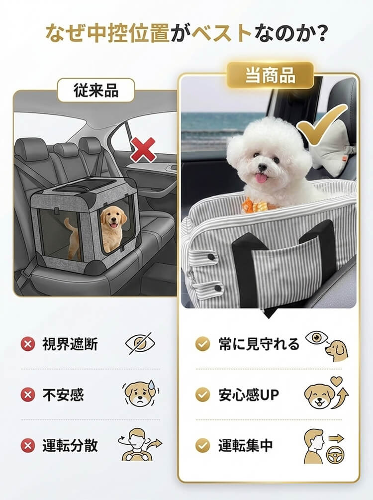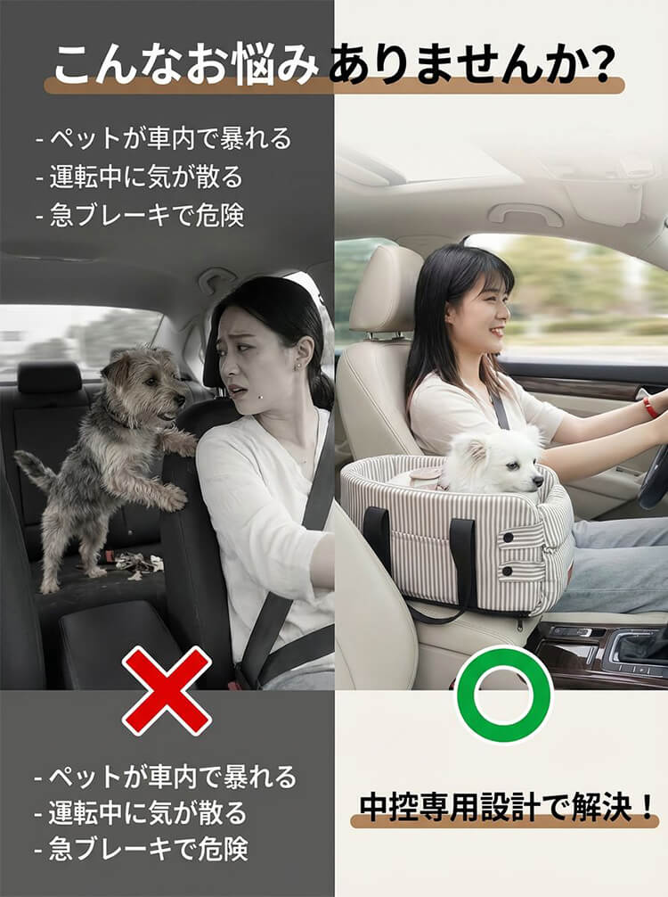 中控専用 ペットドライブボックス センターコンソール用 車載 キャリーバッグ 犬 猫 視野開放 飛び出し防止 安全固定 厚手クッション 肘置き 車移動 お出かけ 通院 小型犬用 安定感抜群 取り付け簡単