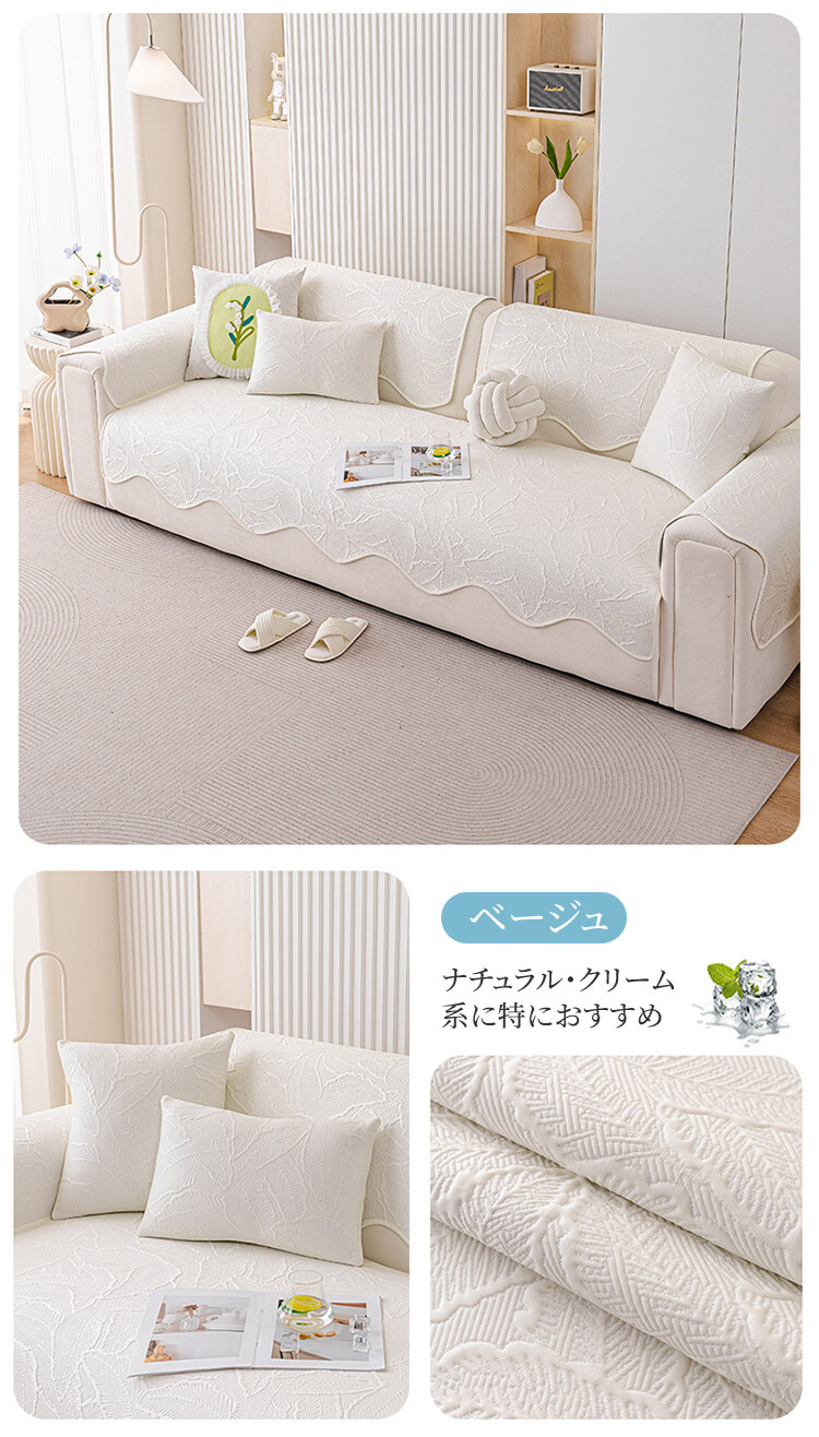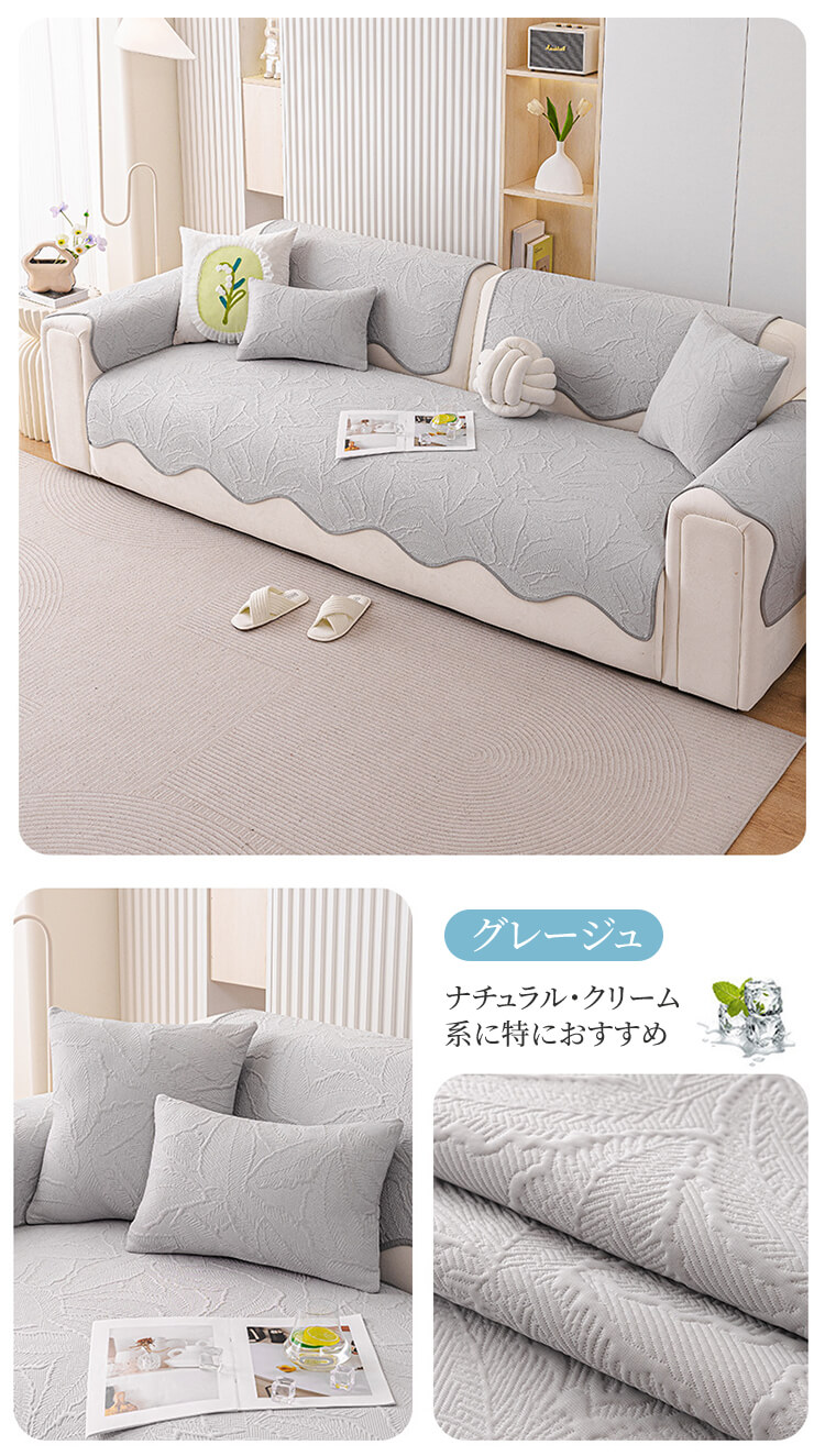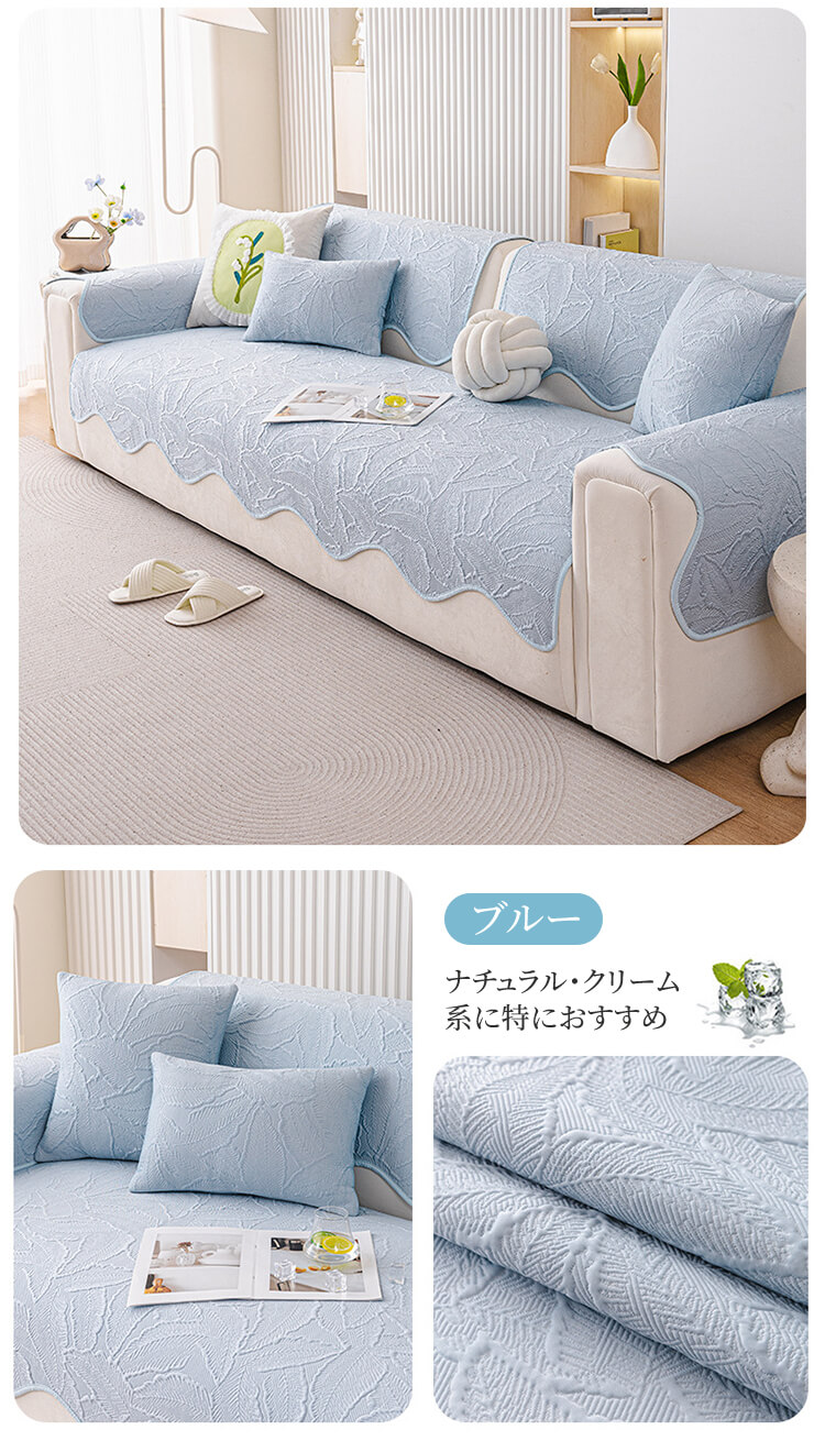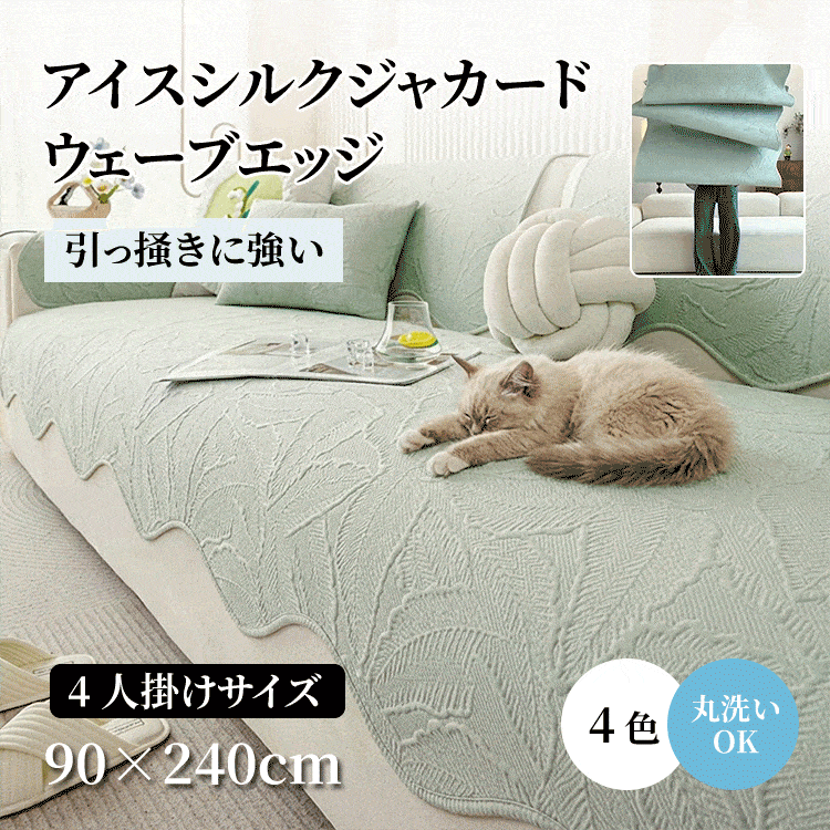 アイスシルクソファーカバー 夏用 接触冷感 ひんやり ジャガード 波形エッジ 滑り止め 爪とぎ防止 伤防止 犬猫対策 4人掛け 大判 丸洗い可 おしゃれ ソファークッション 涼しい