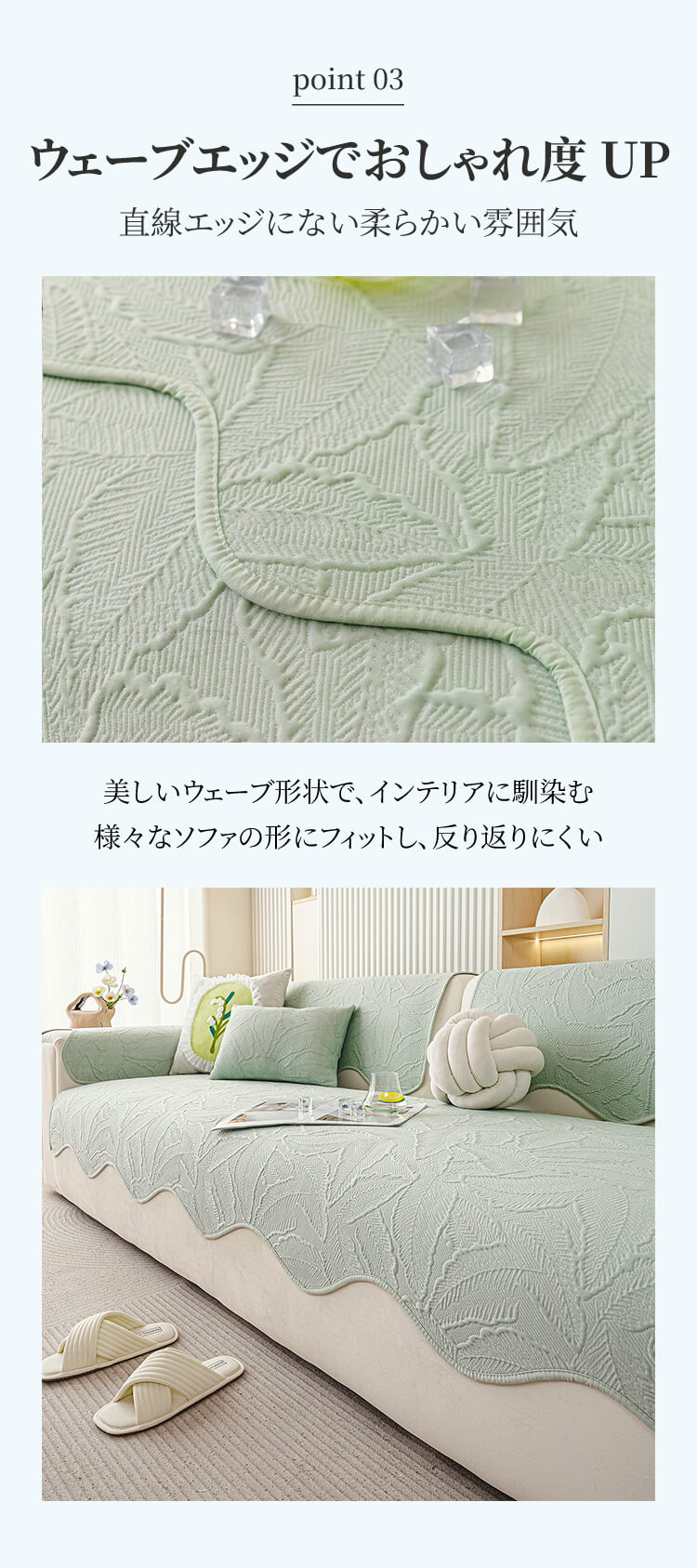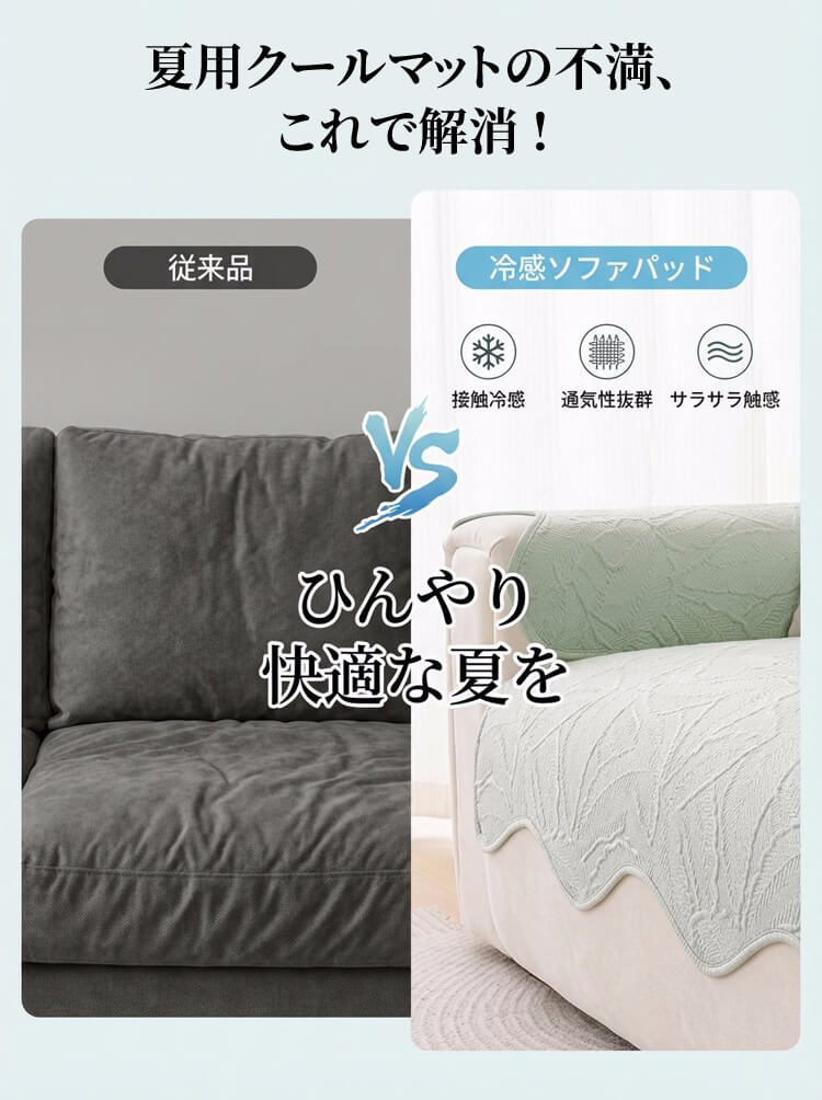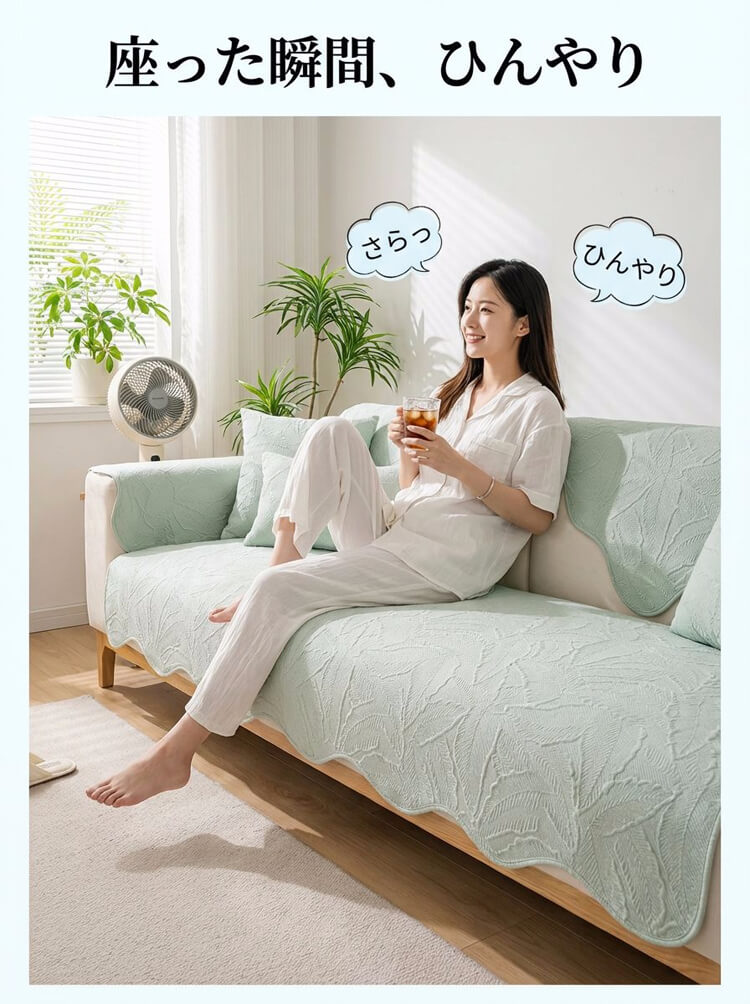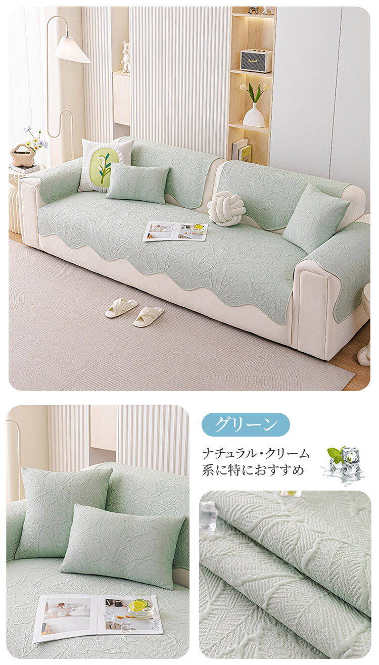 アイスシルクソファーカバー 夏用 接触冷感 ひんやり ジャガード 波形エッジ 滑り止め 爪とぎ防止 伤防止 犬猫対策 4人掛け 大判 丸洗い可 おしゃれ ソファークッション 涼しい