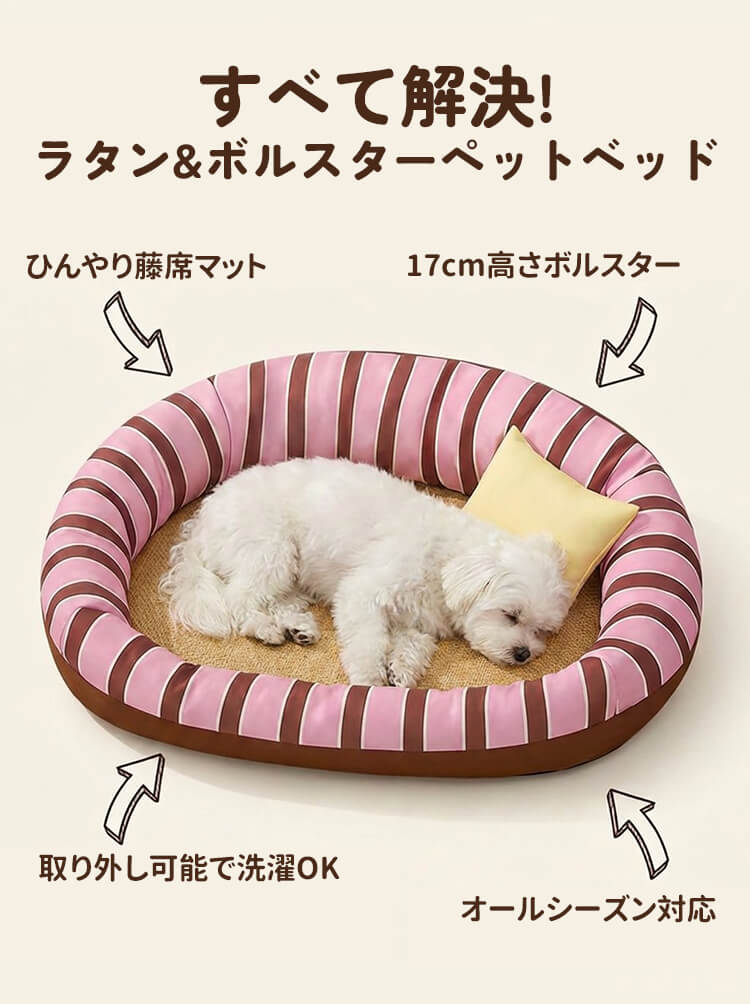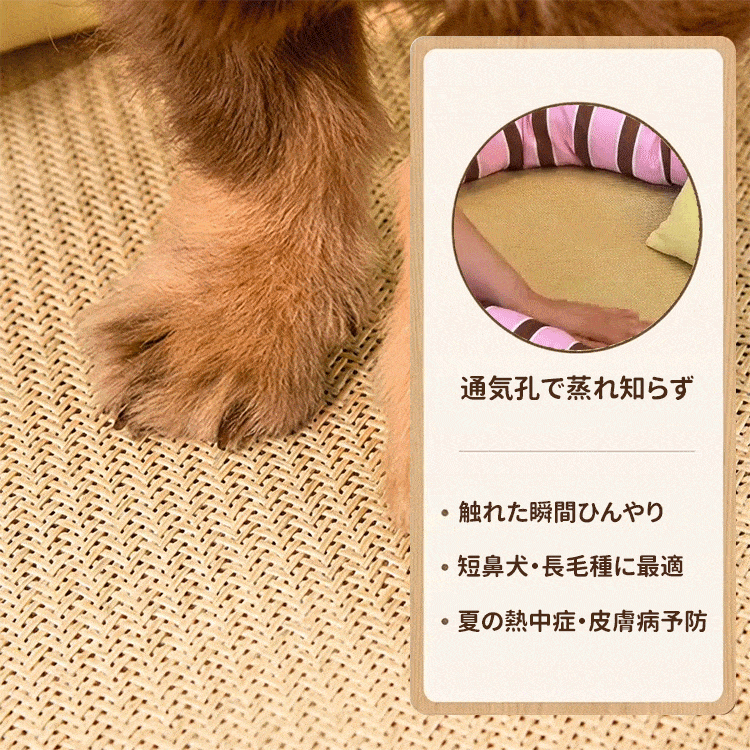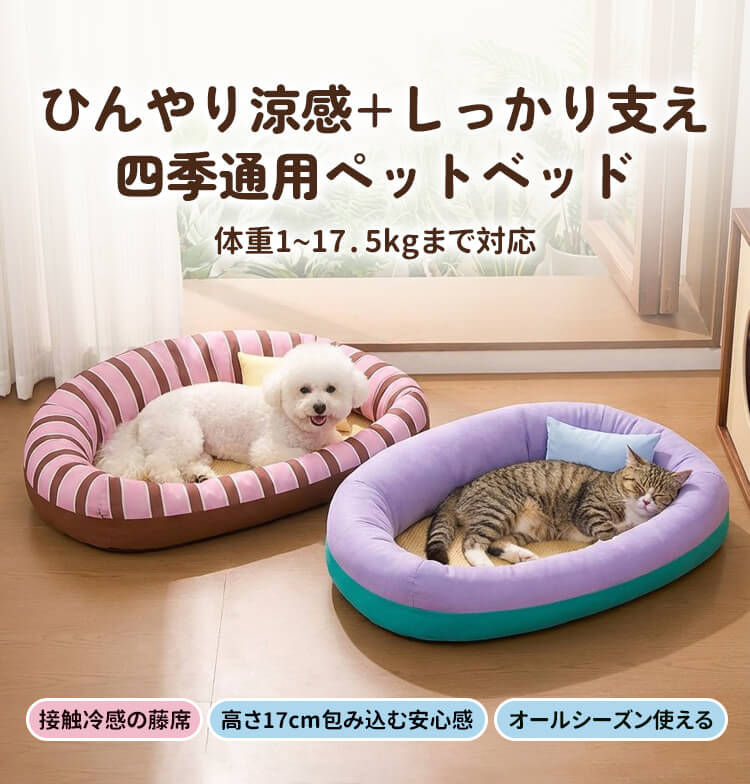 ラタン調ペットベッド 接触冷感 ひんやり 夏用 暑さ対策 藤席 涼しい 17cm高 包み込む 安心感 オールシーズン 四季通用 小型犬 中型犬 猫用 17.5kgまで 丈夫 通気性