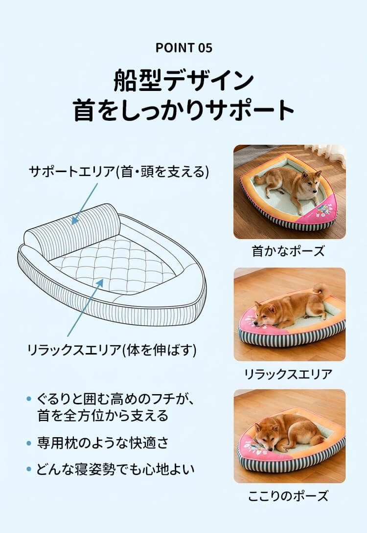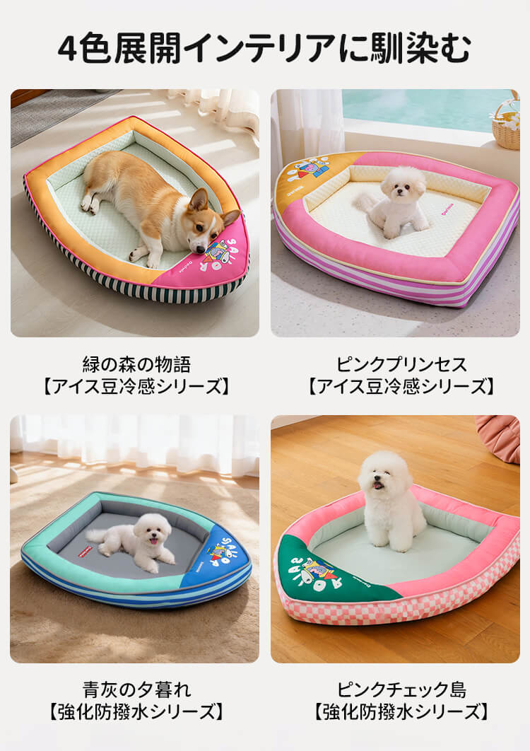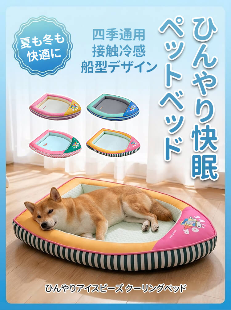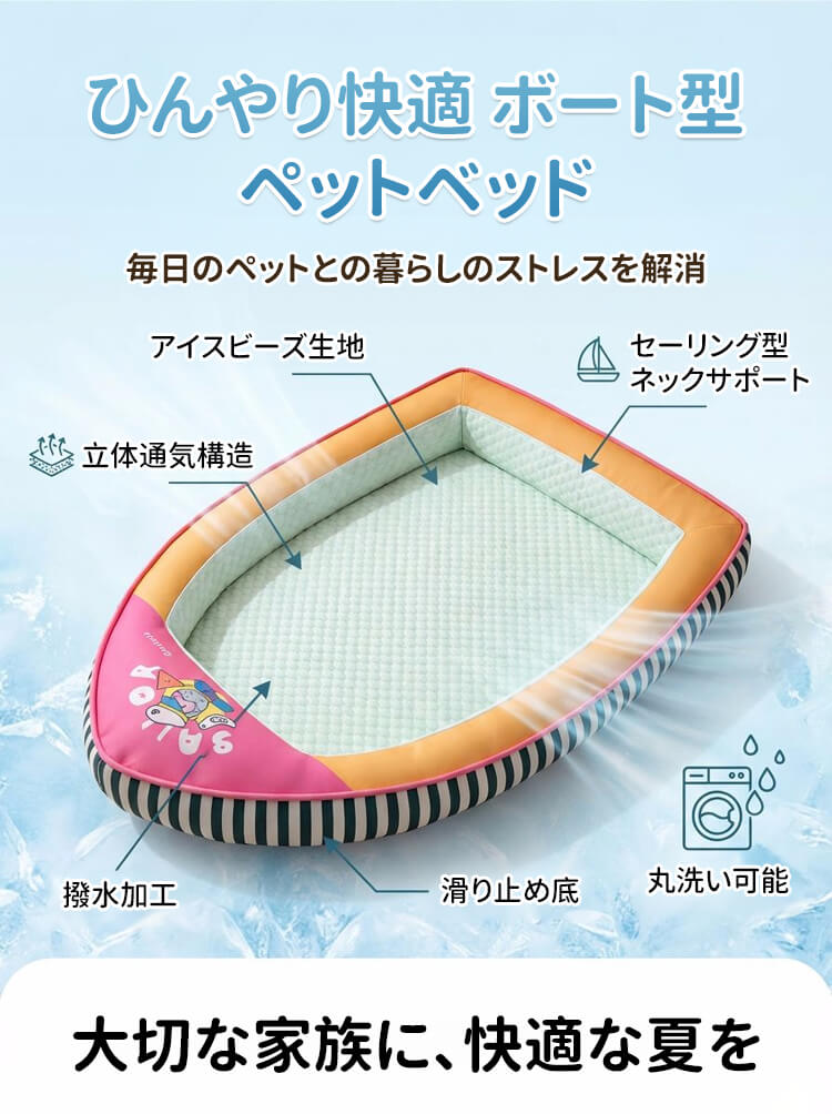 船型ペットベッド 接触冷感 ひんやり 夏用 アイスビーズ素材 クール 四季通用 拨水加工 通気性 蒸れない ネックサポート 顎乗せ 熟睡 丸洗い可能 滑り止め 猫 小中型犬 暑さ対策 涼しい