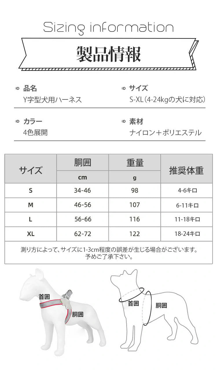 犬用ハーネス Y字型 通気性 反射機能