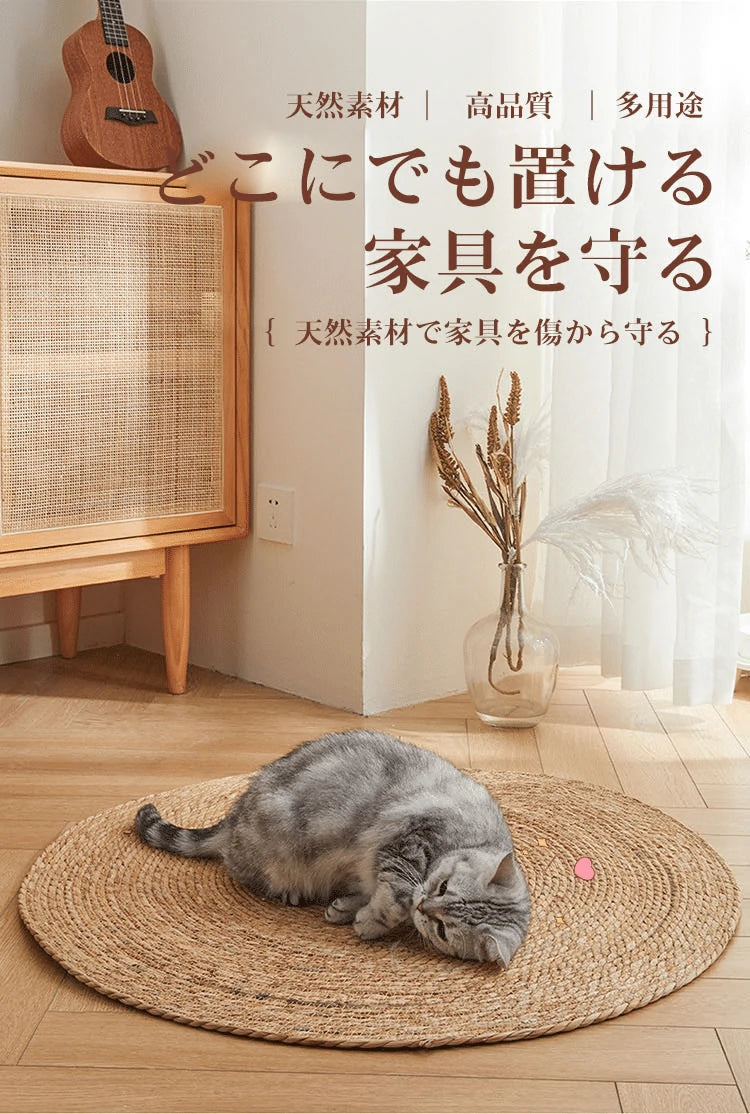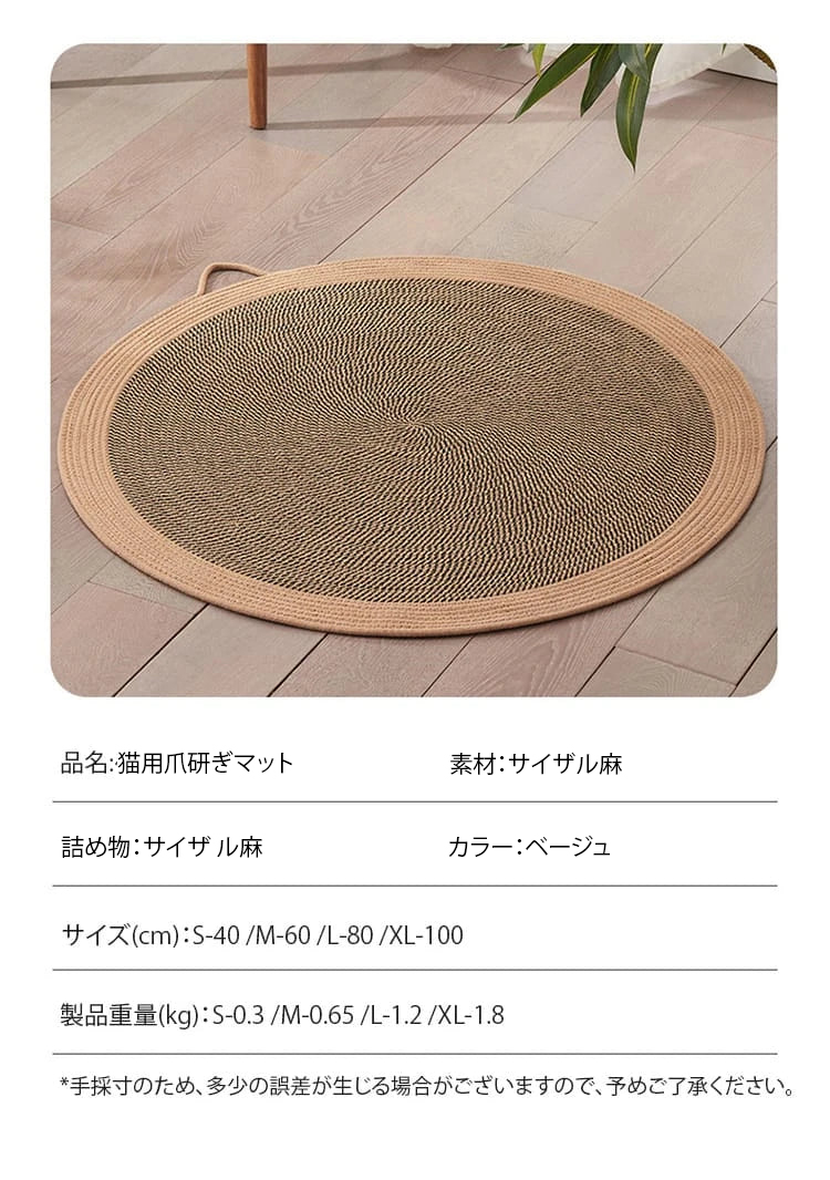 Giipet-ペットマット 天然素材 爪研ぎ ゆったり マルチサイズ ラウンド 猫 爪とぎ 天然素材 耐摩耗 爪研ぎ 猫 耐久 家具傷防止 猫爪とぎ 取り付け簡単 爪とぎマット スクラッチパッド つめとぎシート 爪研ぎ サイザル 猫用 四季対応 ストレス解消 家具保護 ペット用品