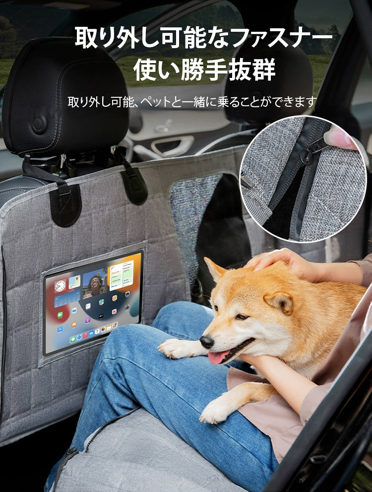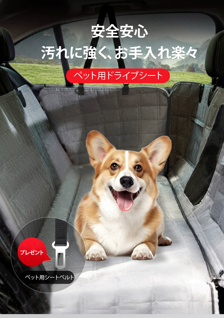 ペット用ドライブシート ドライブシート 全車種 車ペットシート 後部座席 可視メッシュ窓 飛び出し防止リード付き 汚れ防止 防水 耐摩 滑り止め 簡単取り付け 折り畳み式 ブラック