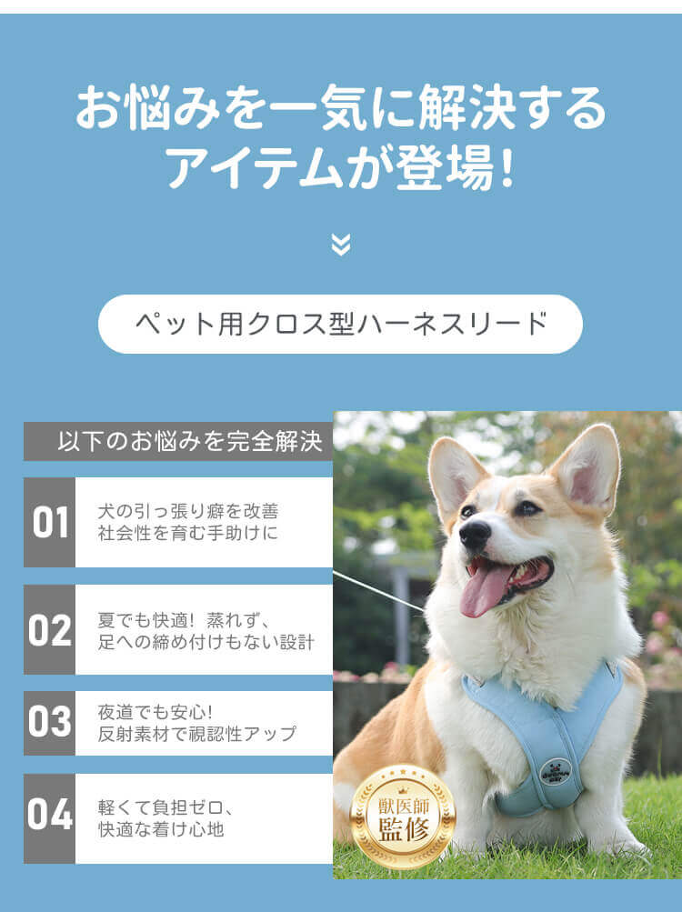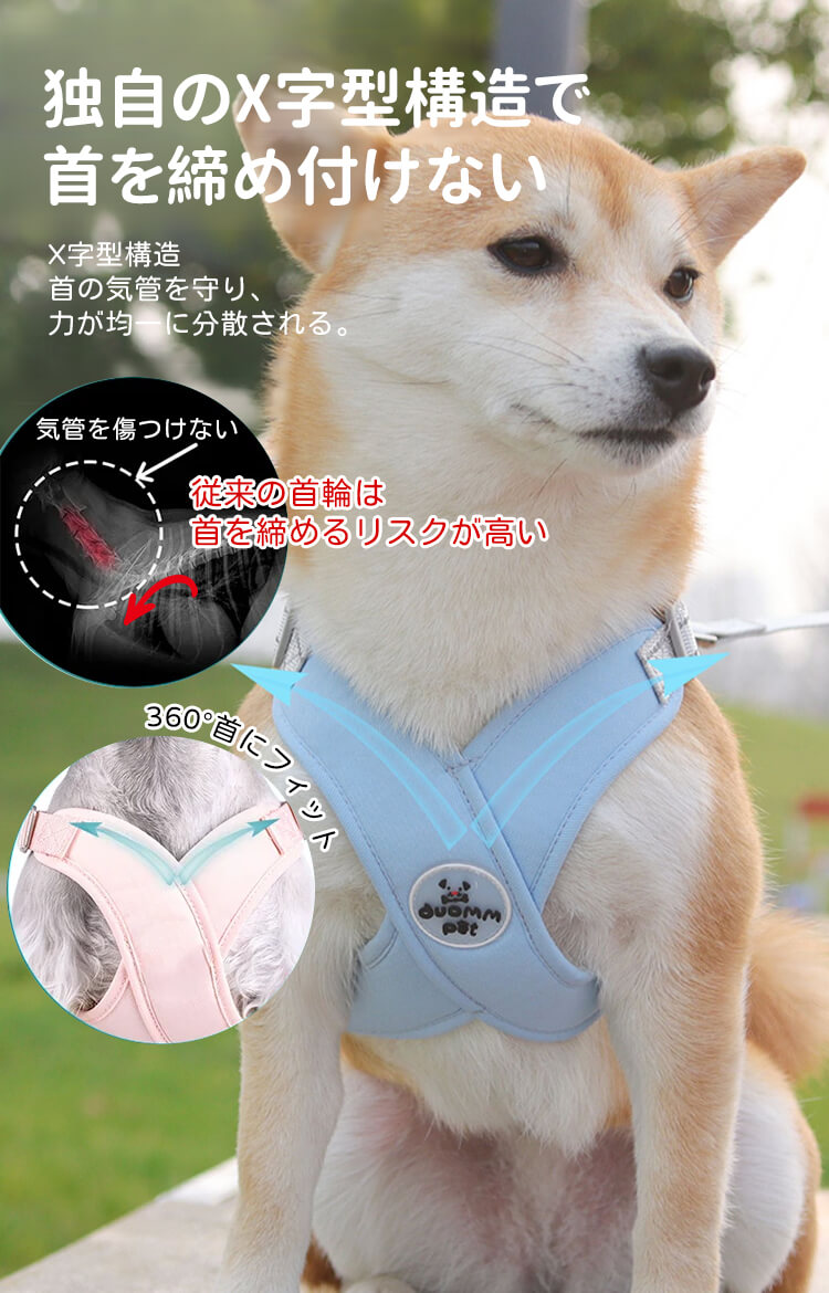 犬用クロス型ハーネス&リードセット 喉を避けるX字構造 安心の獣医師共同開発 反射機能付き 軽量設計 通気性40%UP 無段階調整 どんな犬種にもフィット 散歩用 事故防止 迷子防止 引っ張り癖改善