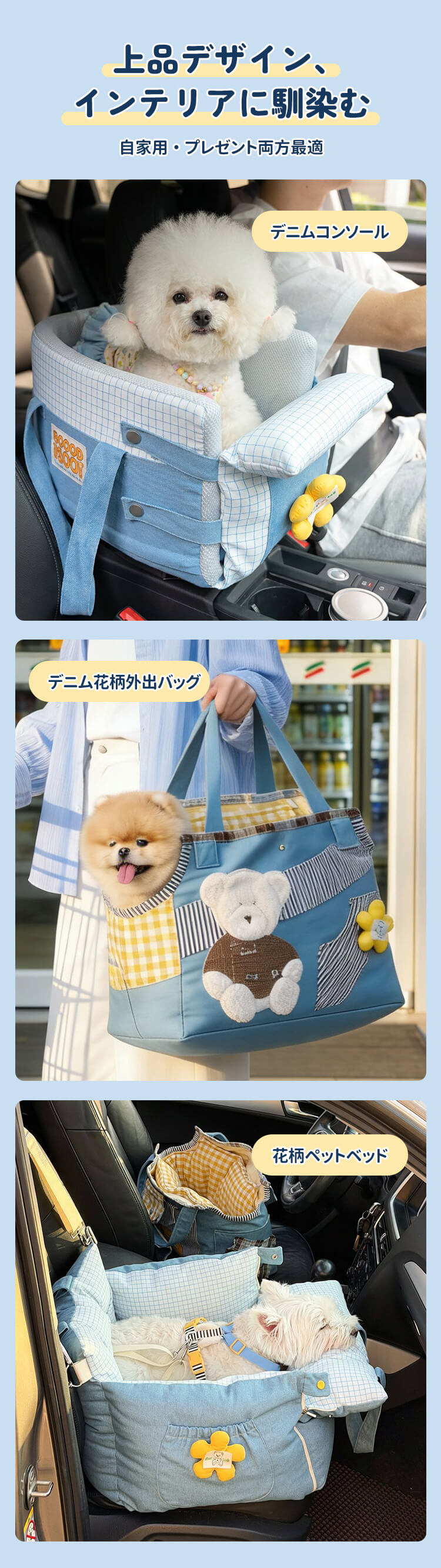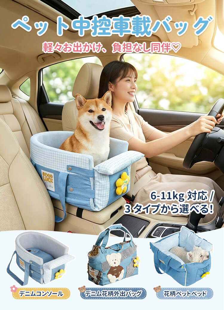【2way多機能GIIPET車 犬 シート】ドライブボックス 犬用|大人可愛い北欧風フラワー 11kgまで対応。車内汚れ防止・お家でも使える多機能ドライブベッド(中型犬・多頭飼い対応)